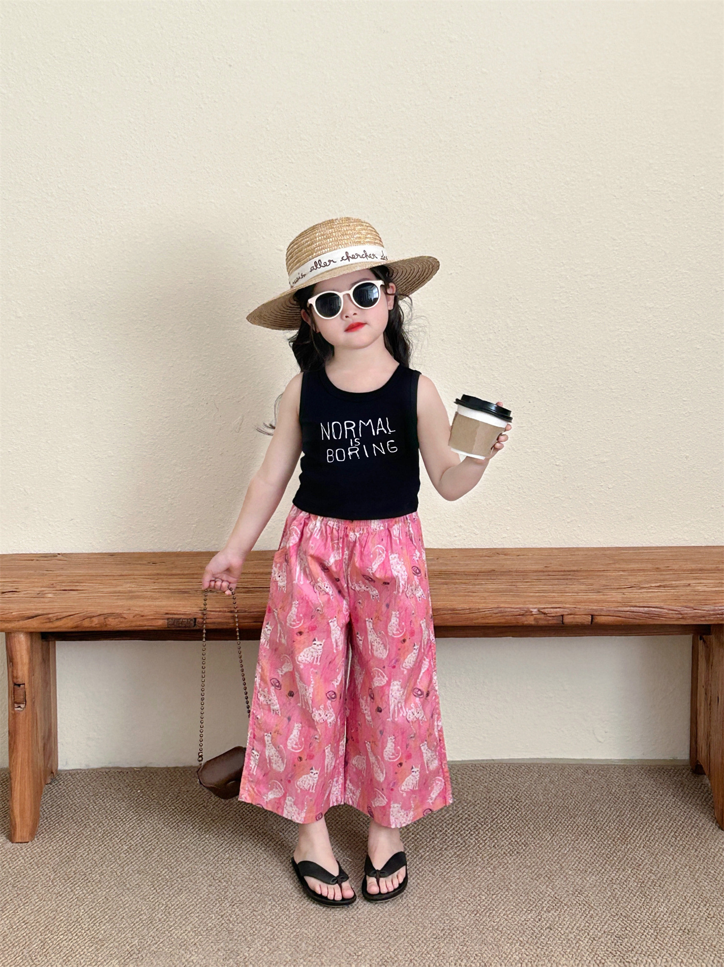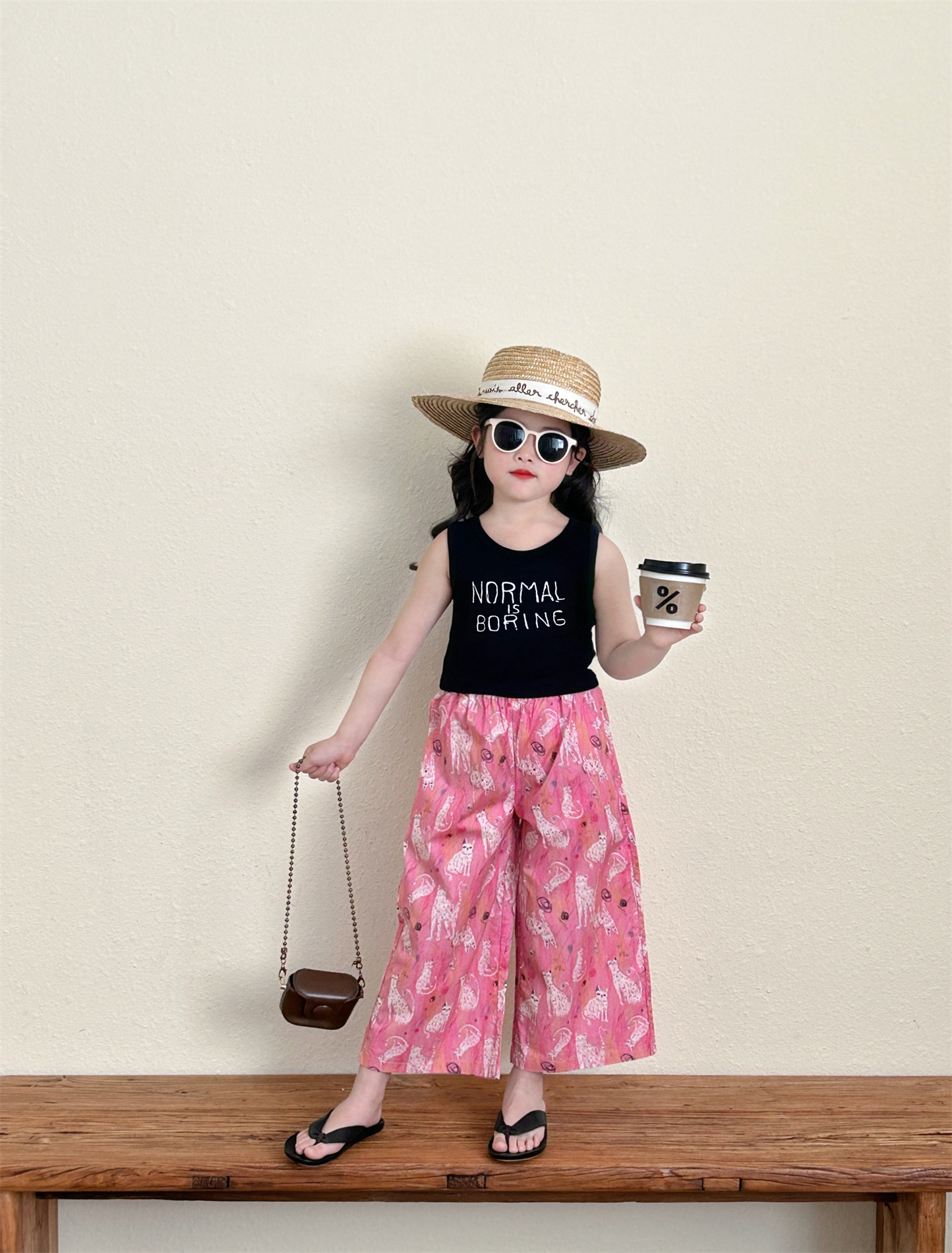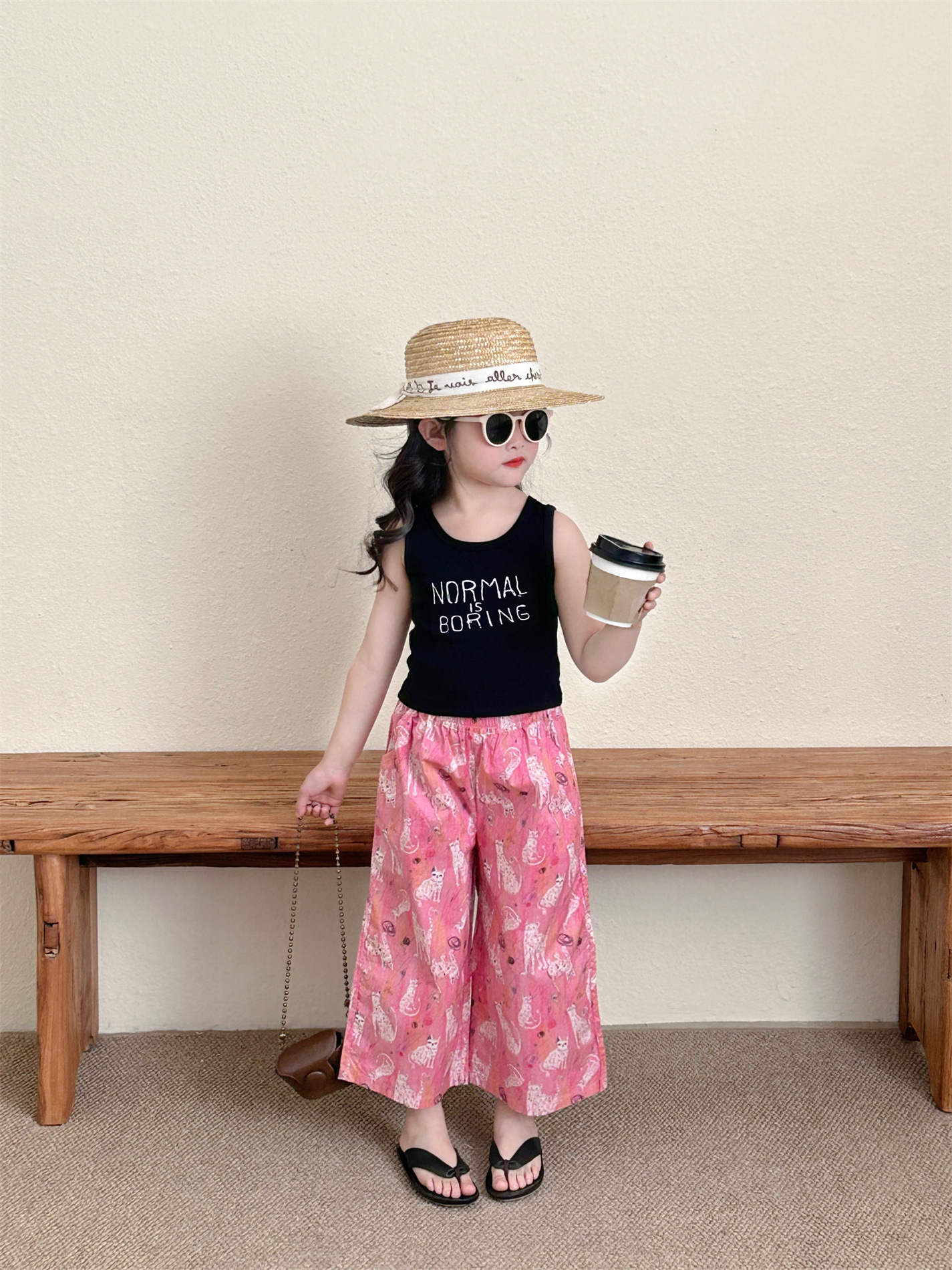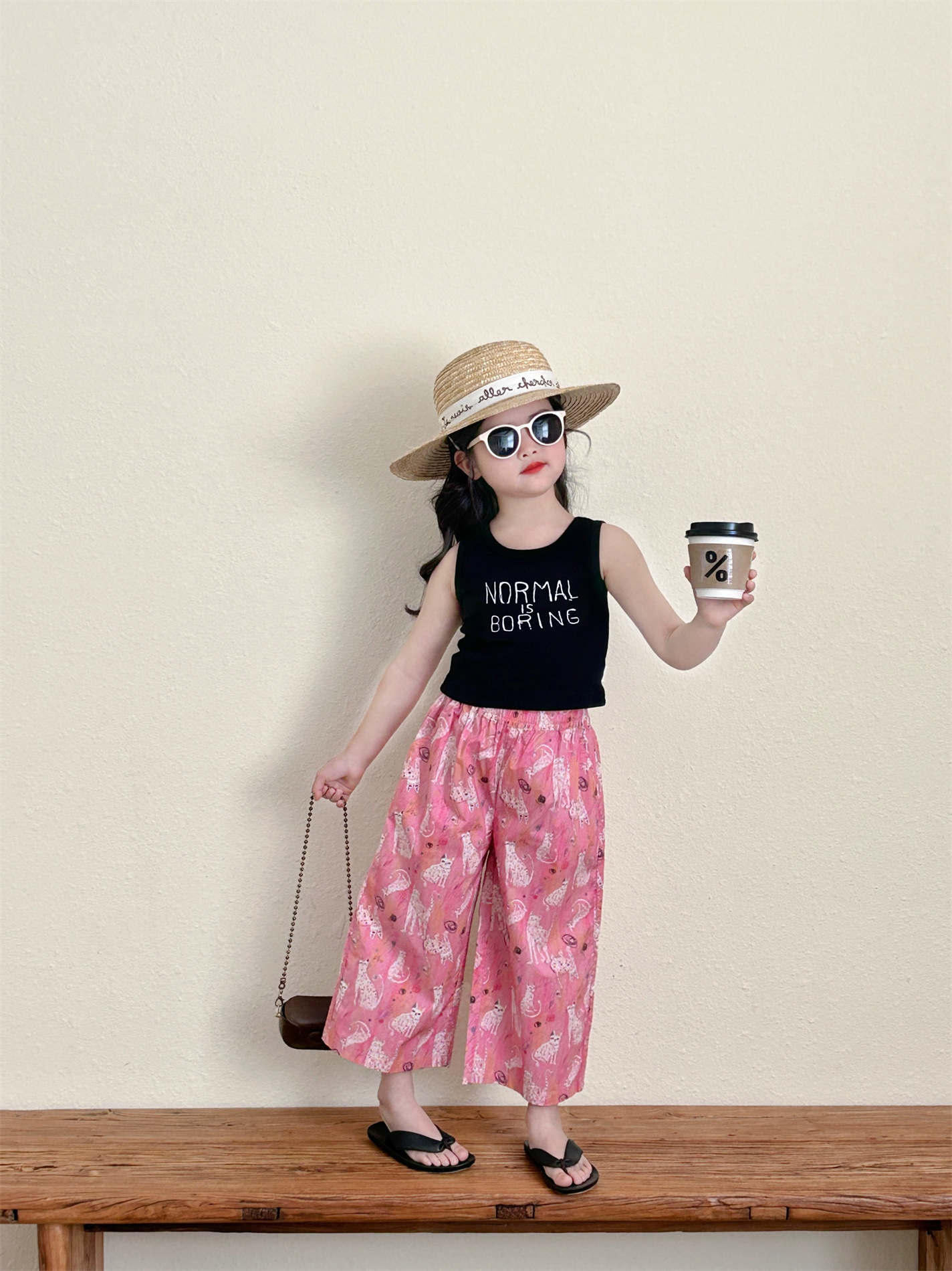 어린이 편지 조끼 2025 여름 새로운 소년과 소녀 모든 경기 간단한 면화 조끼 아기 민소매 탑