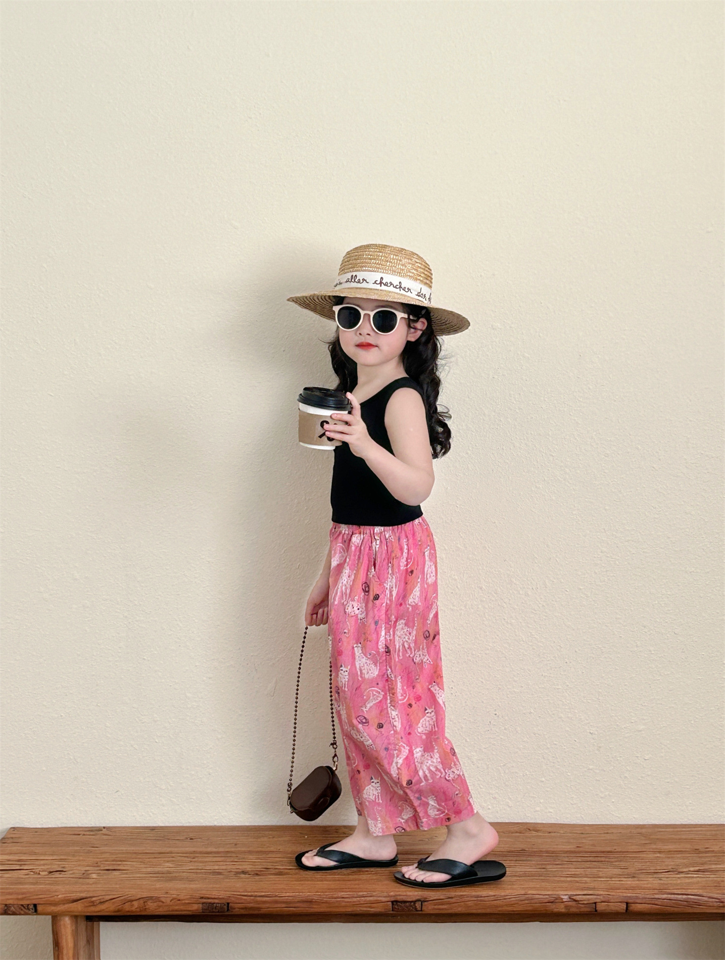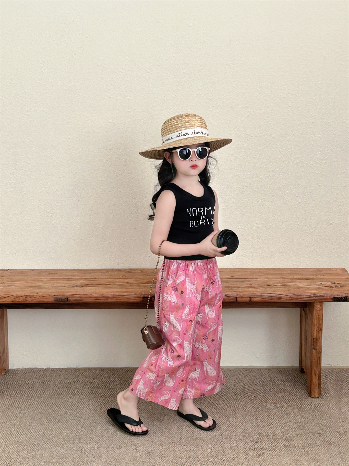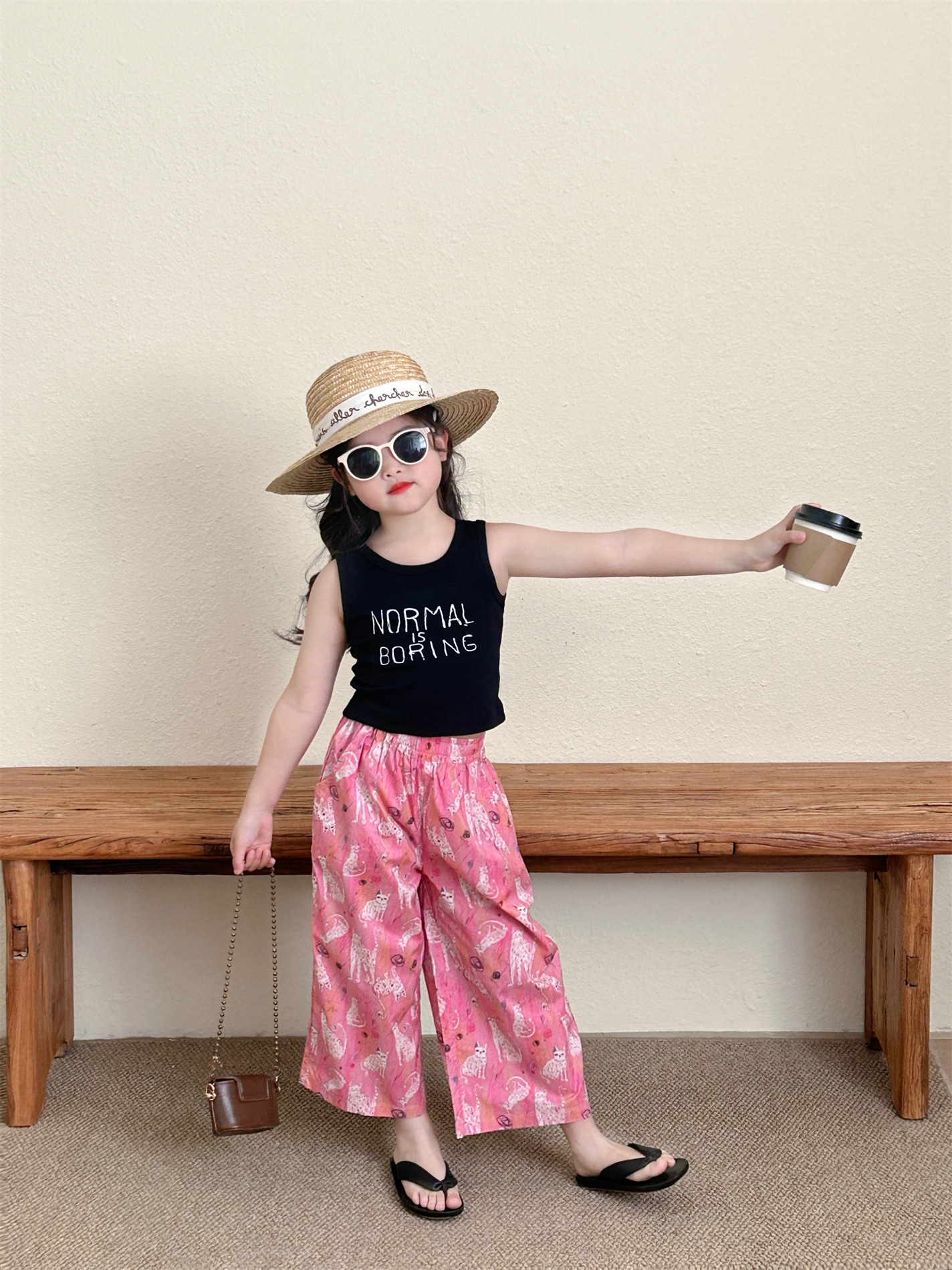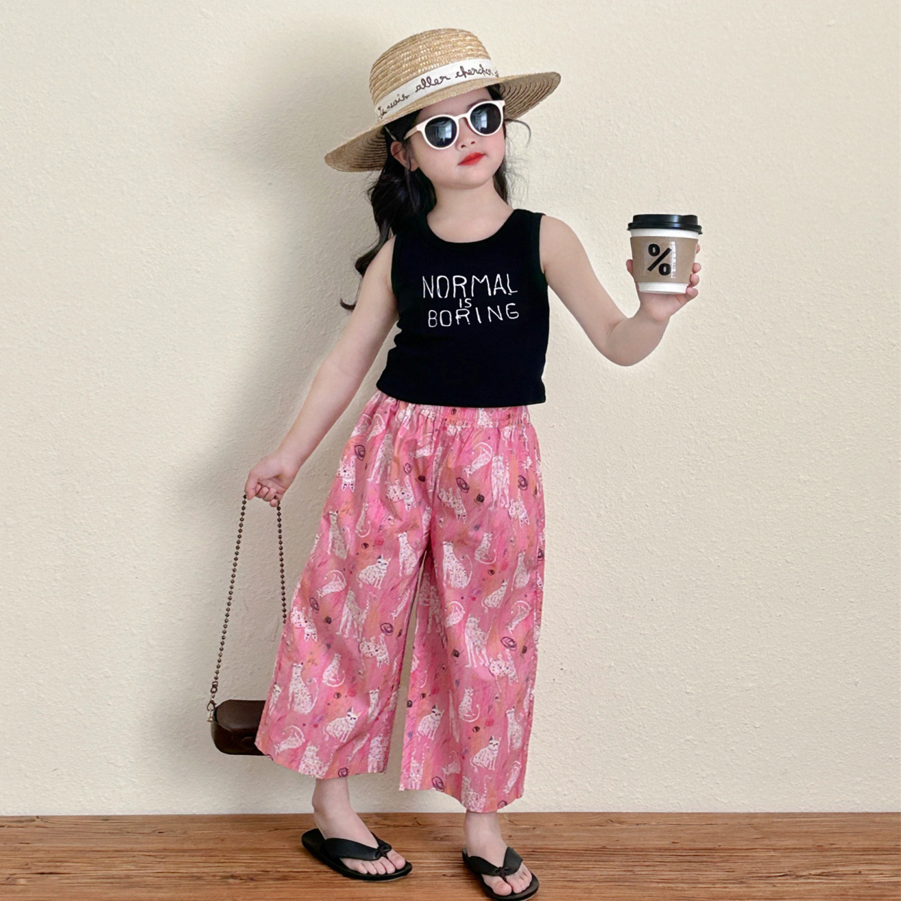 어린이 편지 조끼 2025 여름 새로운 소년과 소녀 모든 경기 간단한 면화 조끼 아기 민소매 탑