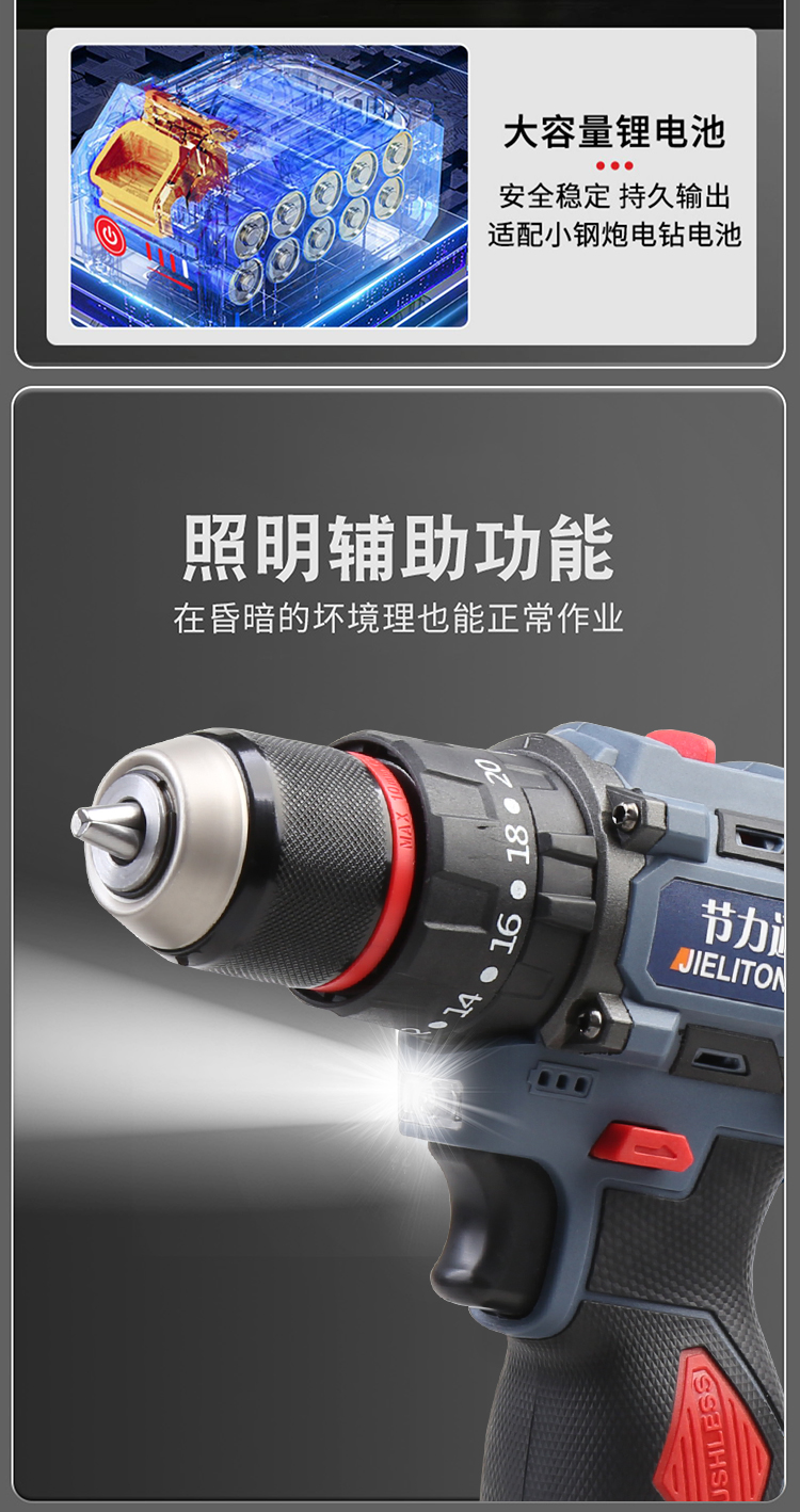 • 18V 브러시리스 2단 소형 강철 대포 배터리 2개 1회 충전 + 표준 구성