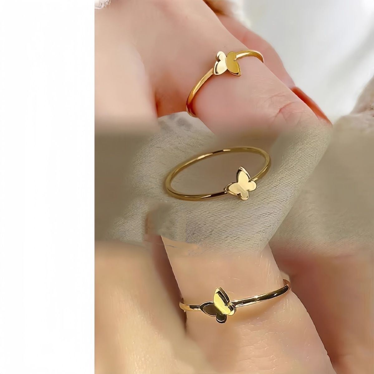 반지를 제거하지 않고 절묘한, 작은 군중, 퇴색, 이중 레이어 디자인, 나비 조인트, 작은 미니 링, 여성을위한 귀여운
