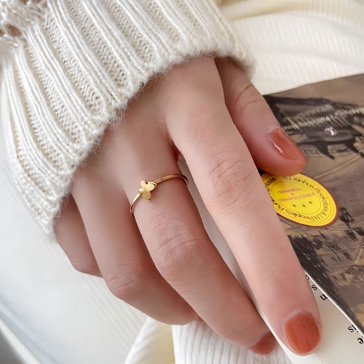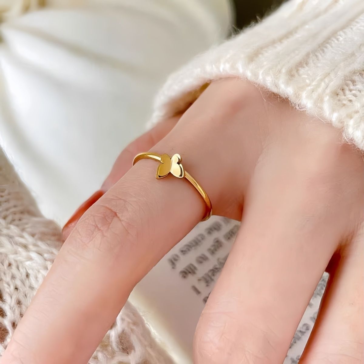반지를 제거하지 않고 절묘한, 작은 군중, 퇴색, 이중 레이어 디자인, 나비 조인트, 작은 미니 링, 여성을위한 귀여운스토어 가기