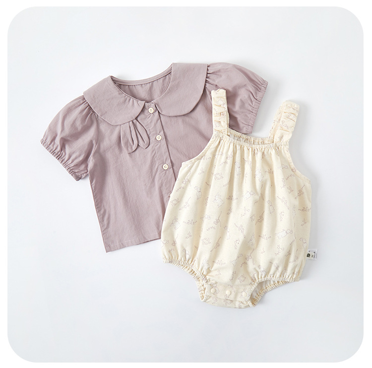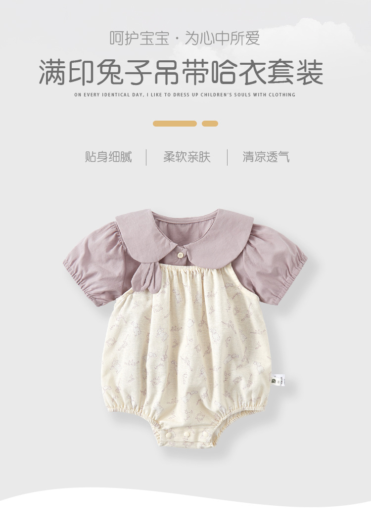 유아용 바디슈트 세트 2025 여름 신상 유아용 얇은 면 셔츠 토끼 원피스 투피스 세트