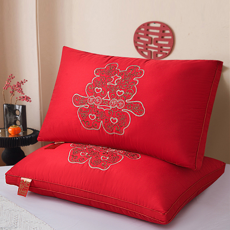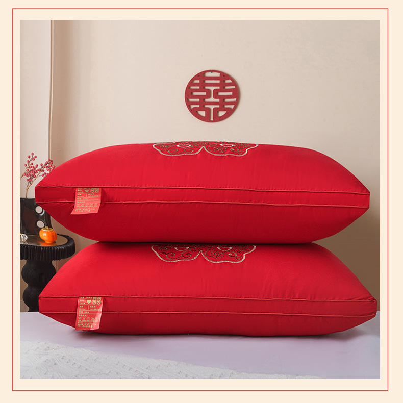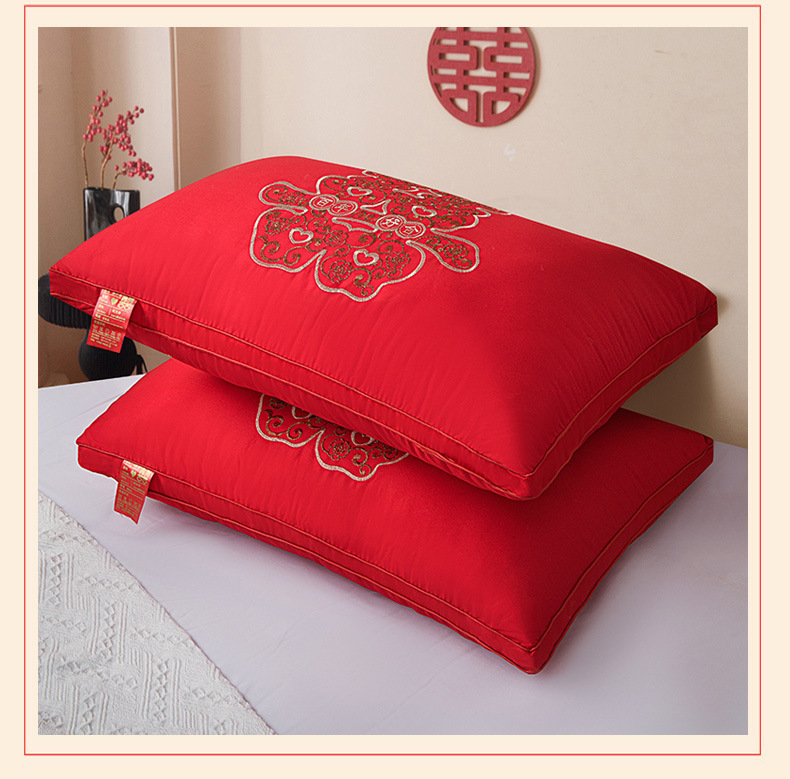 면 자수 하이 엔드 웨딩 깃털 벨벳 베개 코어 중국 스타일 축제 웨딩 싱글 베개 공장 직접 도매스토어 가기
