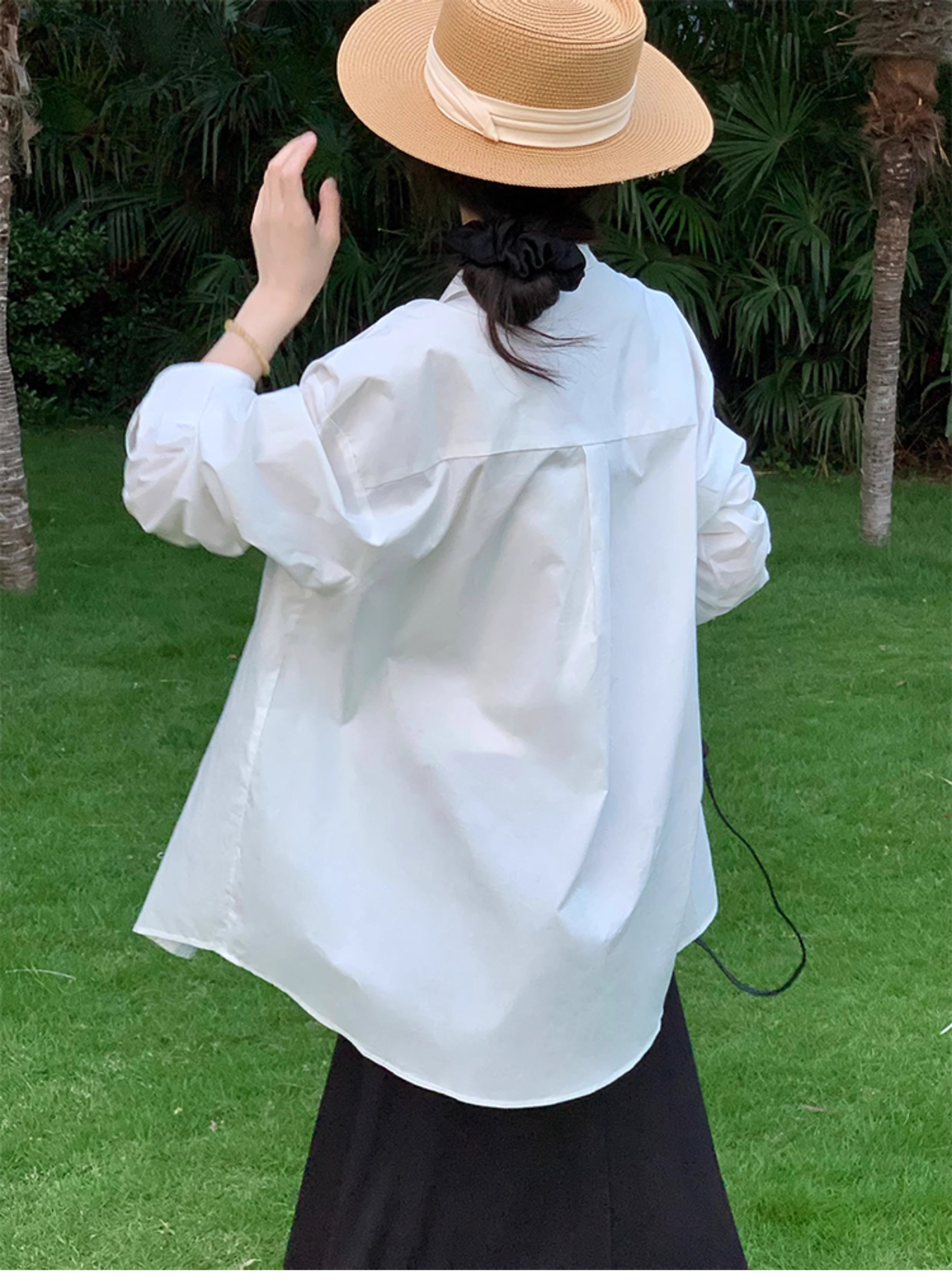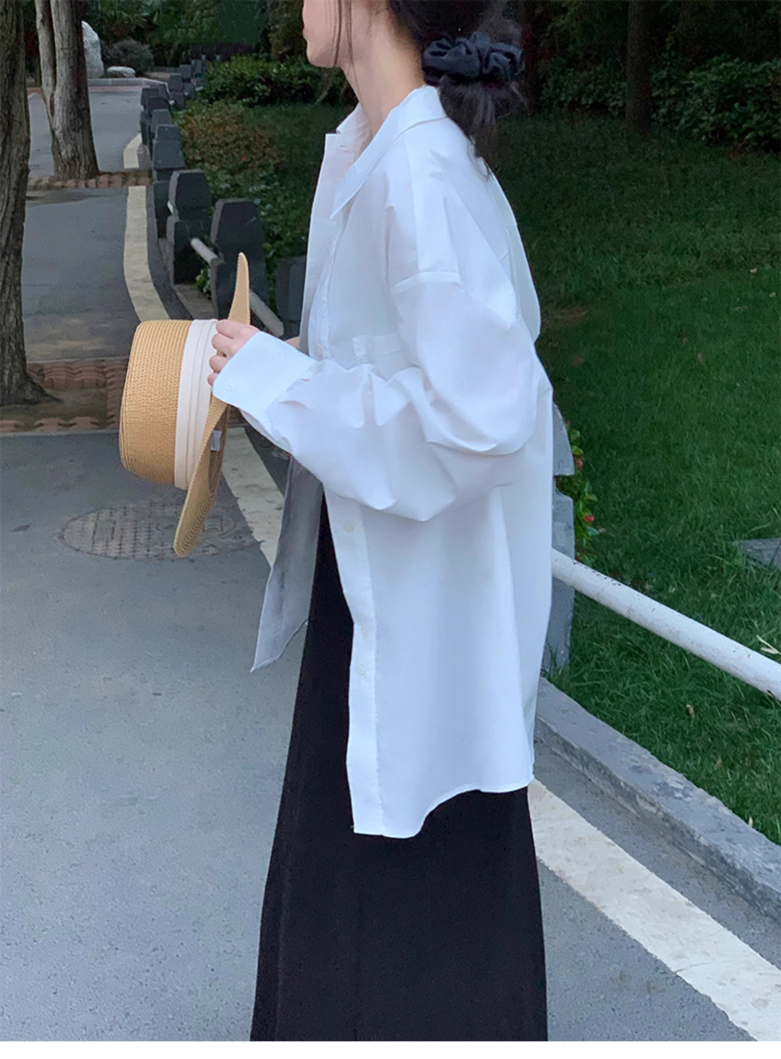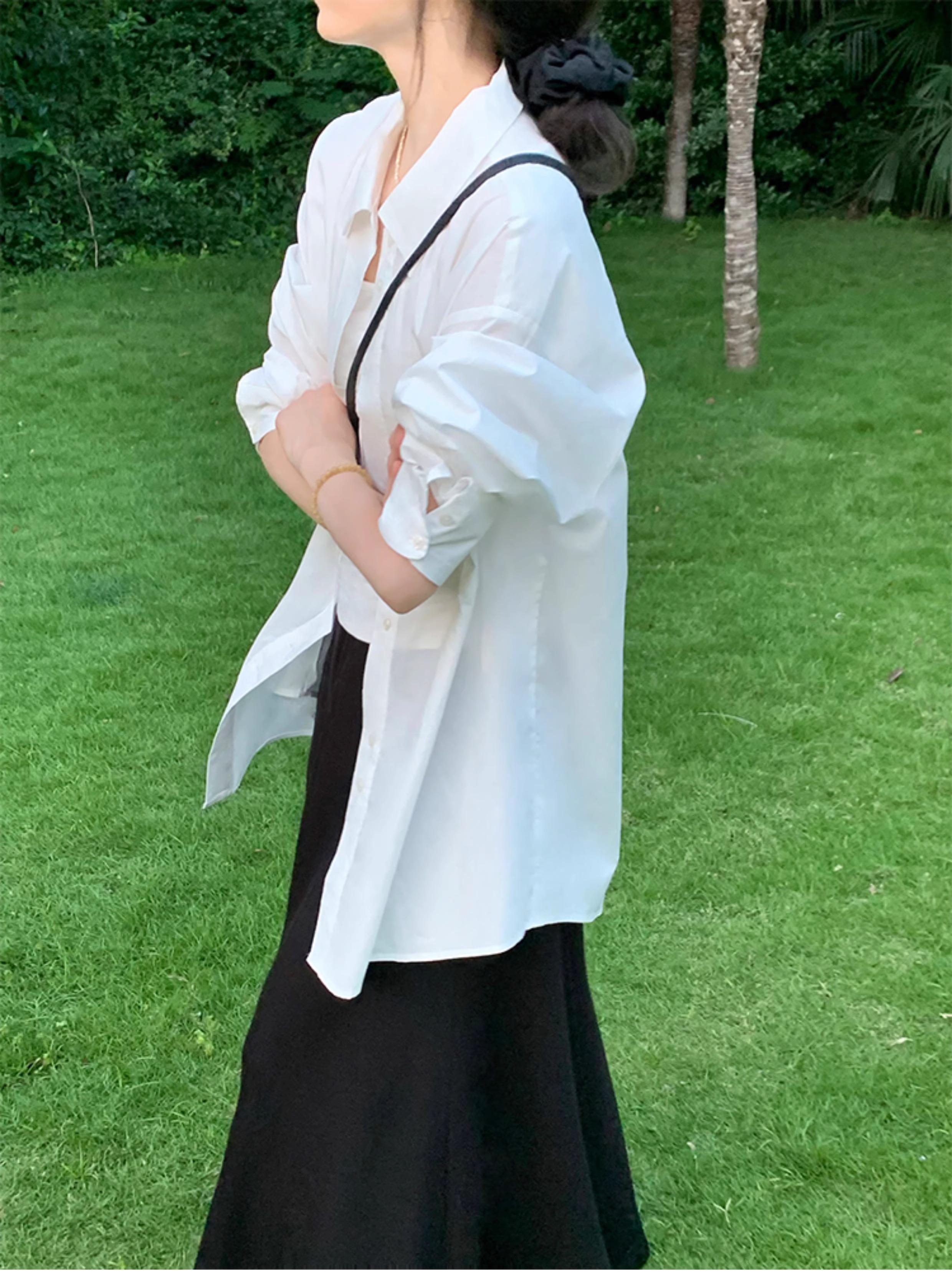 흰색 긴팔 셔츠 여성용 코트 카디건 외부 디자인 틈새 캐주얼 게으른 스타일 얇은 느슨한