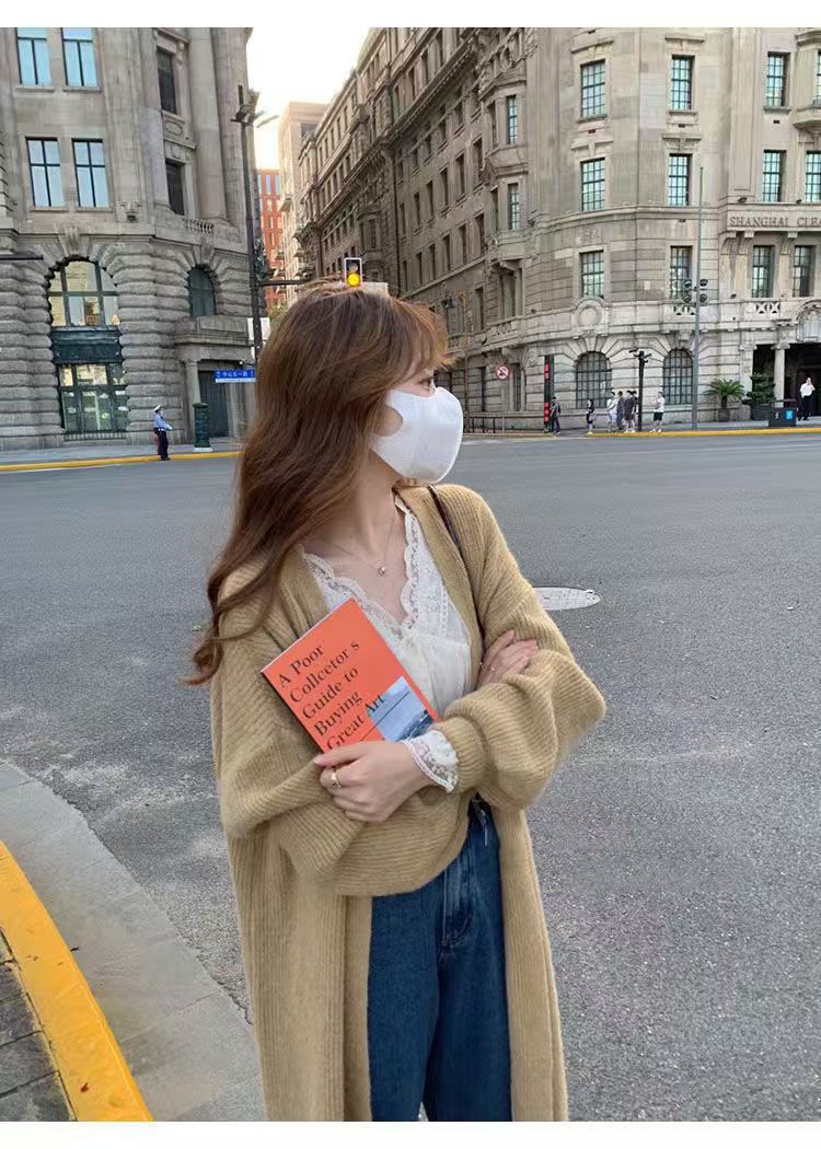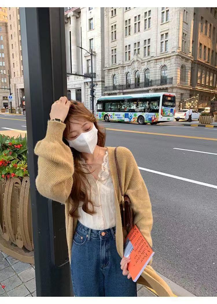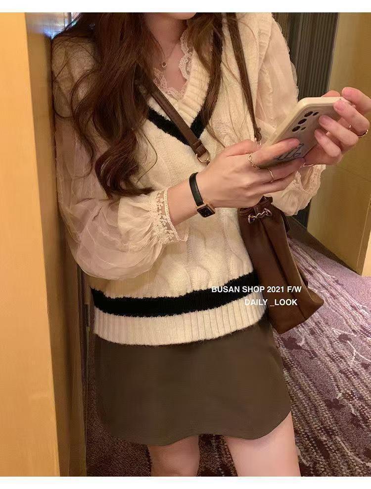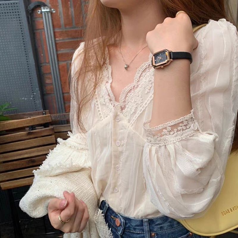 달콤한 V 넥 레이스 퍼프 소매 셔츠 여성용 하이 엔드 얇은 쉬폰 긴 소매 탑스토어 가기