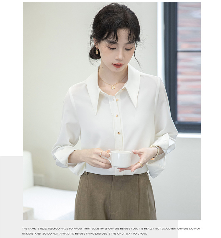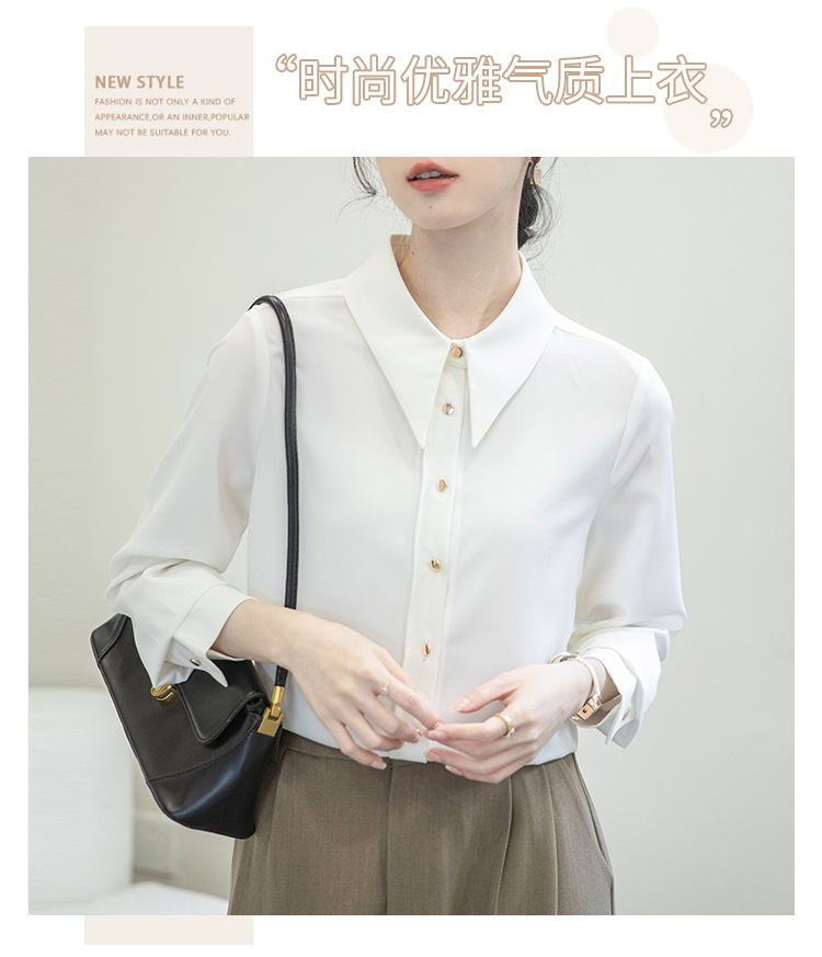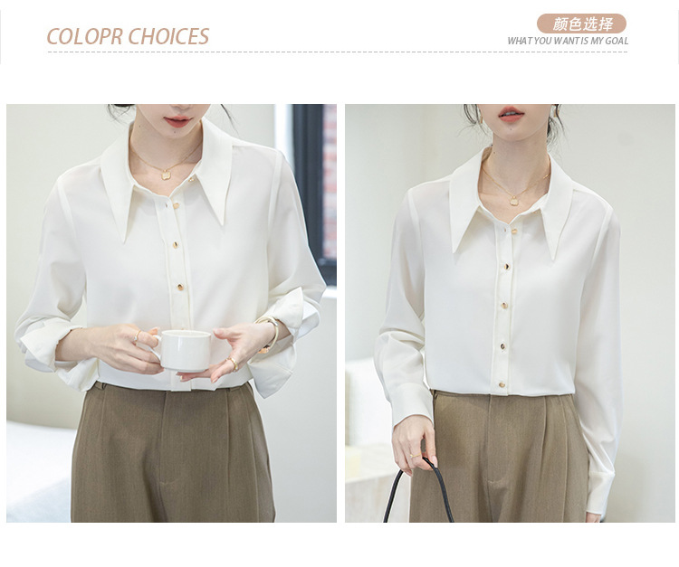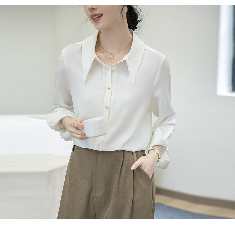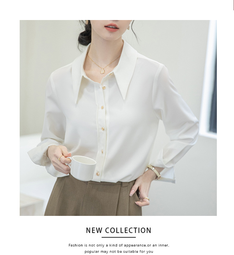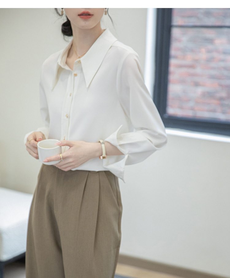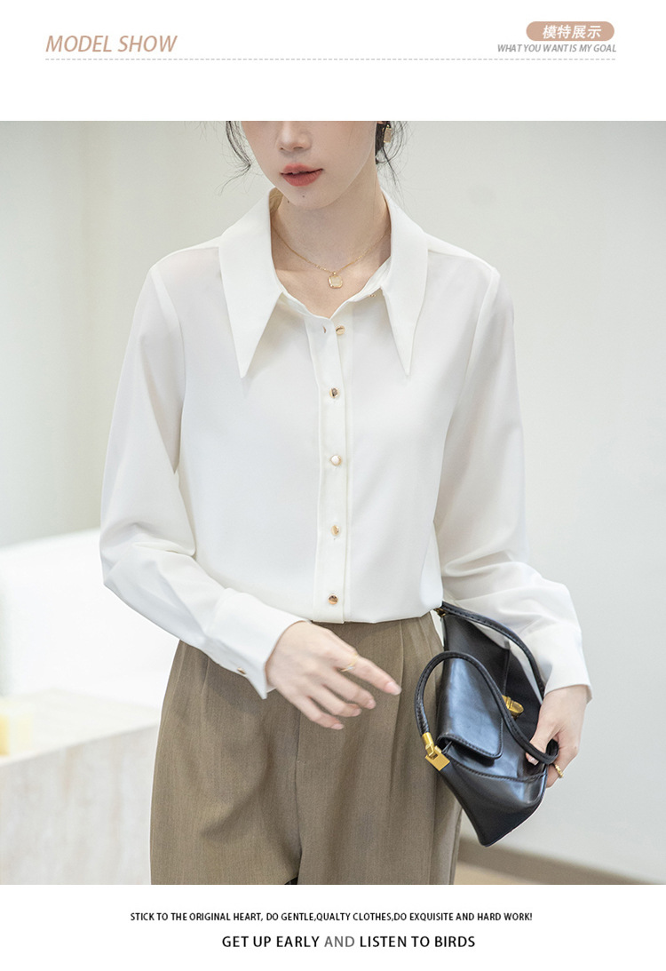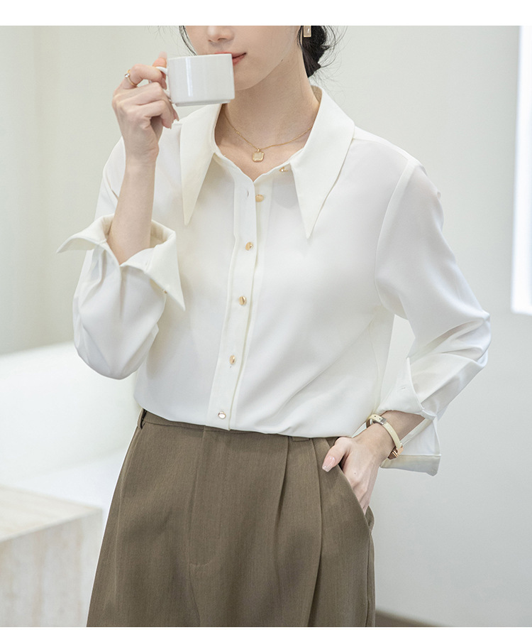2024 Real Shot Spring Small Point Collar Commuter White Shirt 여성 Satin Draping Professional Top Design Sense Niche
