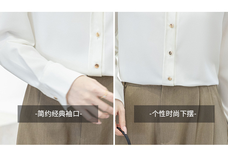 2024 Real Shot Spring Small Point Collar Commuter White Shirt 여성 Satin Draping Professional Top Design Sense Niche스토어 가기