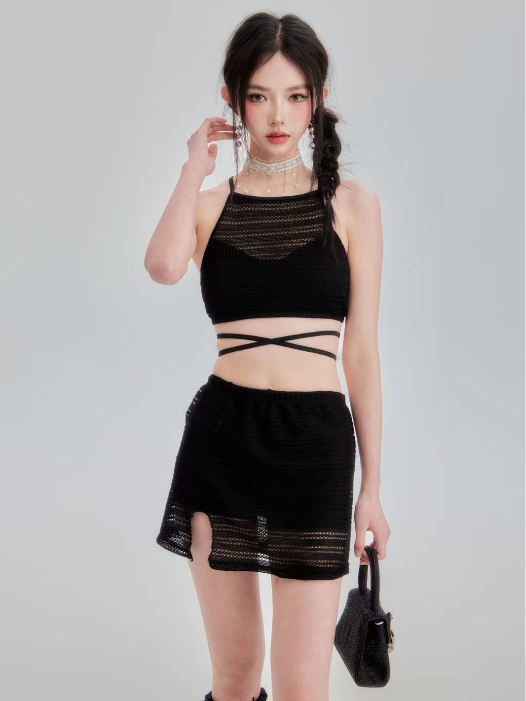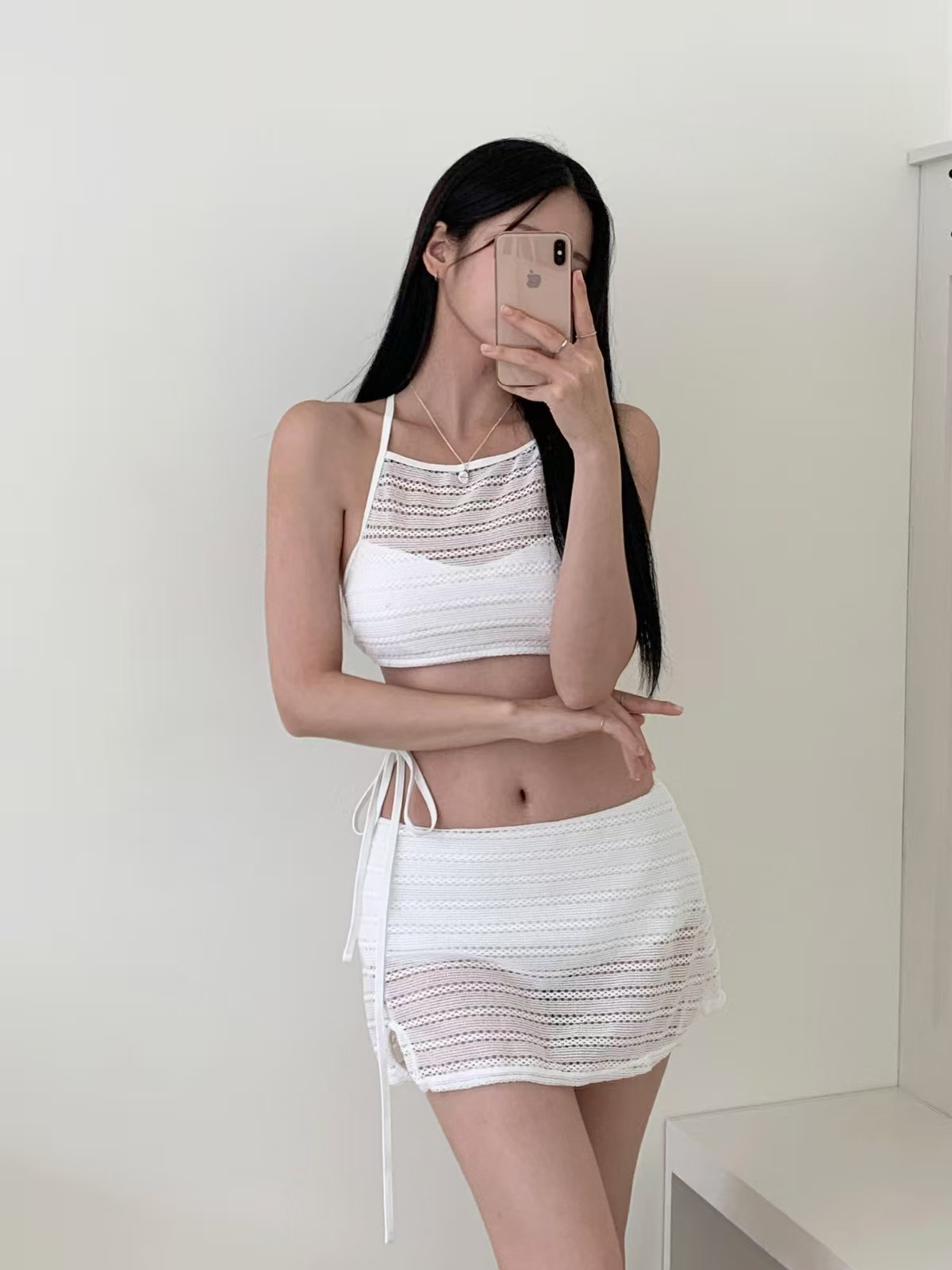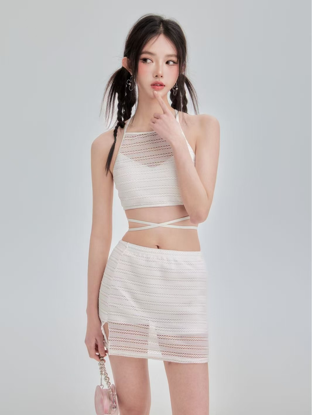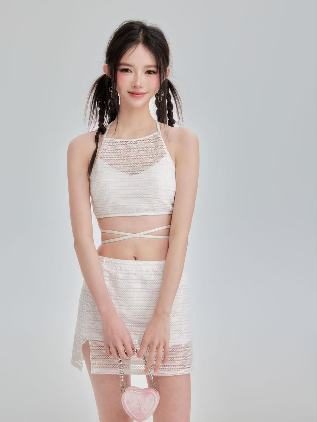 한국 인 스타일 고급 레이스 메쉬 작은 가슴 분할 보수 스커트 스타일 순수한 욕망 스타일 수영복 여성 수영복