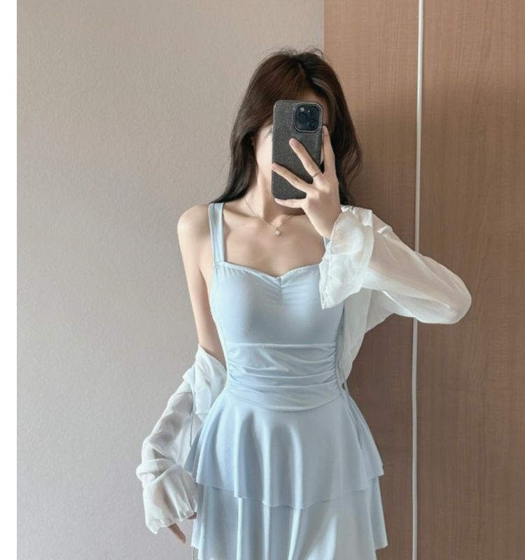 수영복 여성 스커트 스타일 보수적으로 슬리밍 소녀의 슈퍼 페어리 작은 가슴 모이기 한국식 Ins 온천 수영복스토어 가기