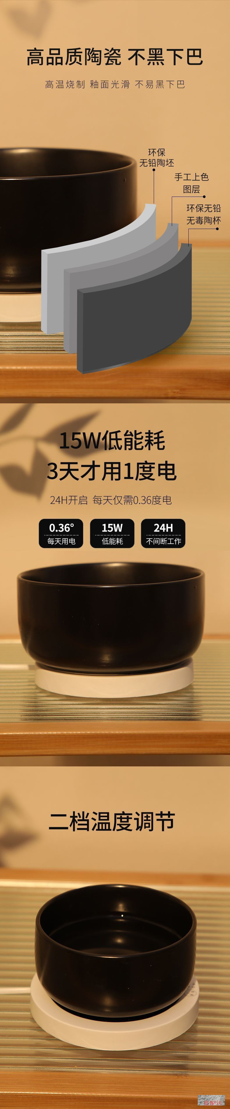 • ஐஐஐ 글레이즈드 블랙 세라믹 그릇 + 온도 조절이 가능한 온도 조절 패드 [품질 검사 통과] ~