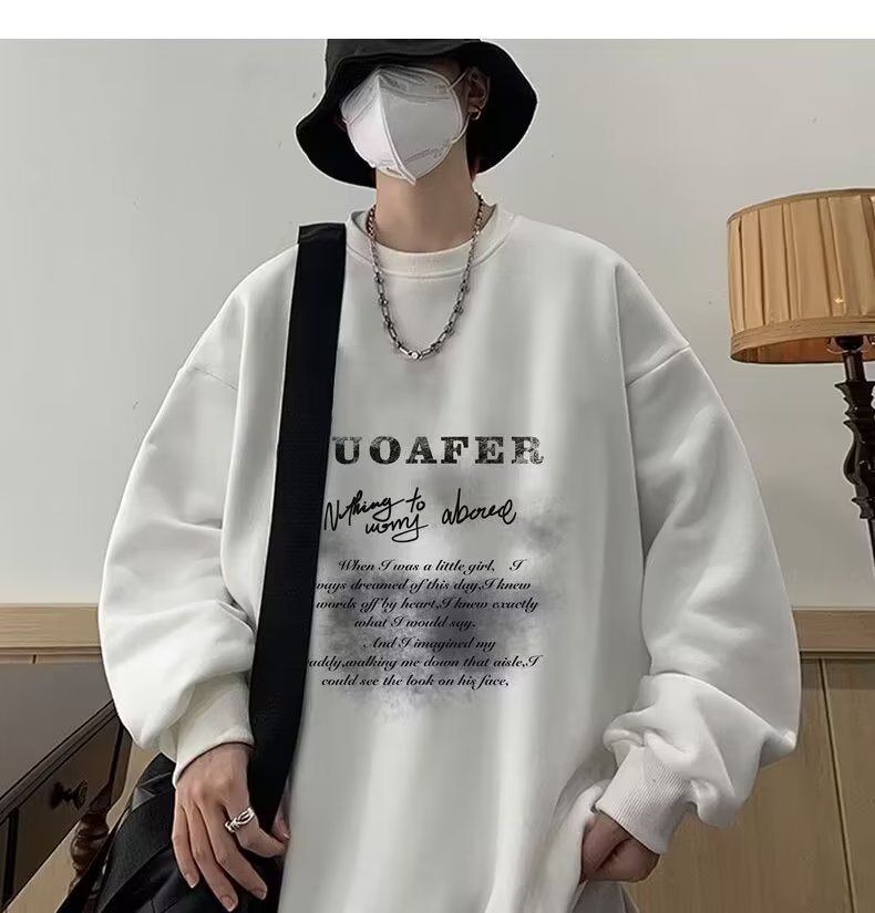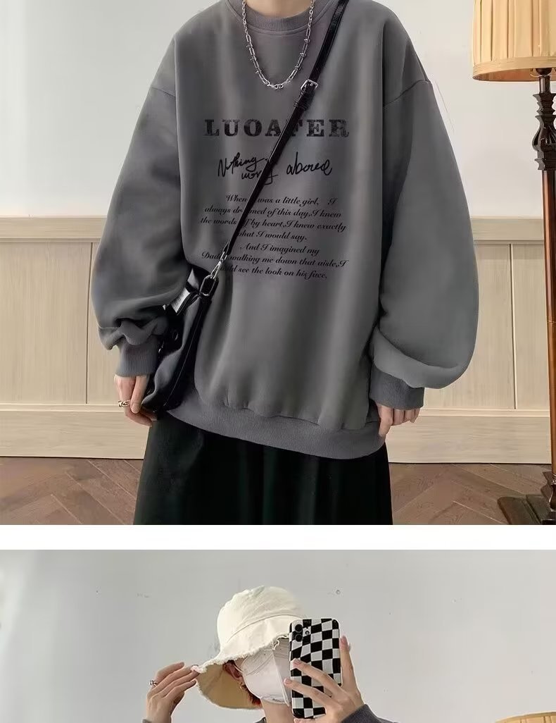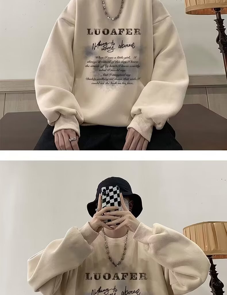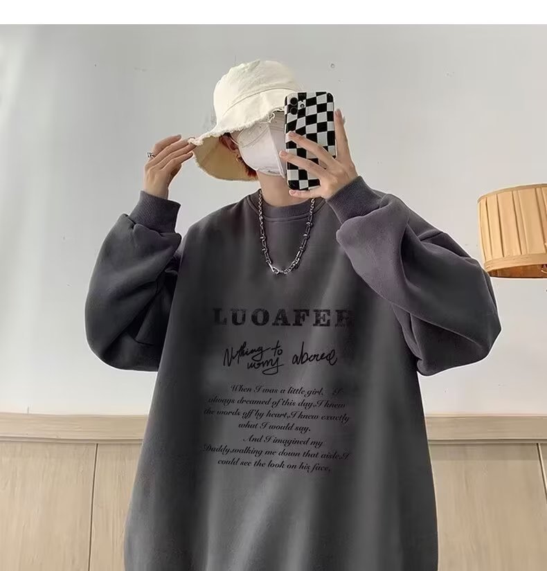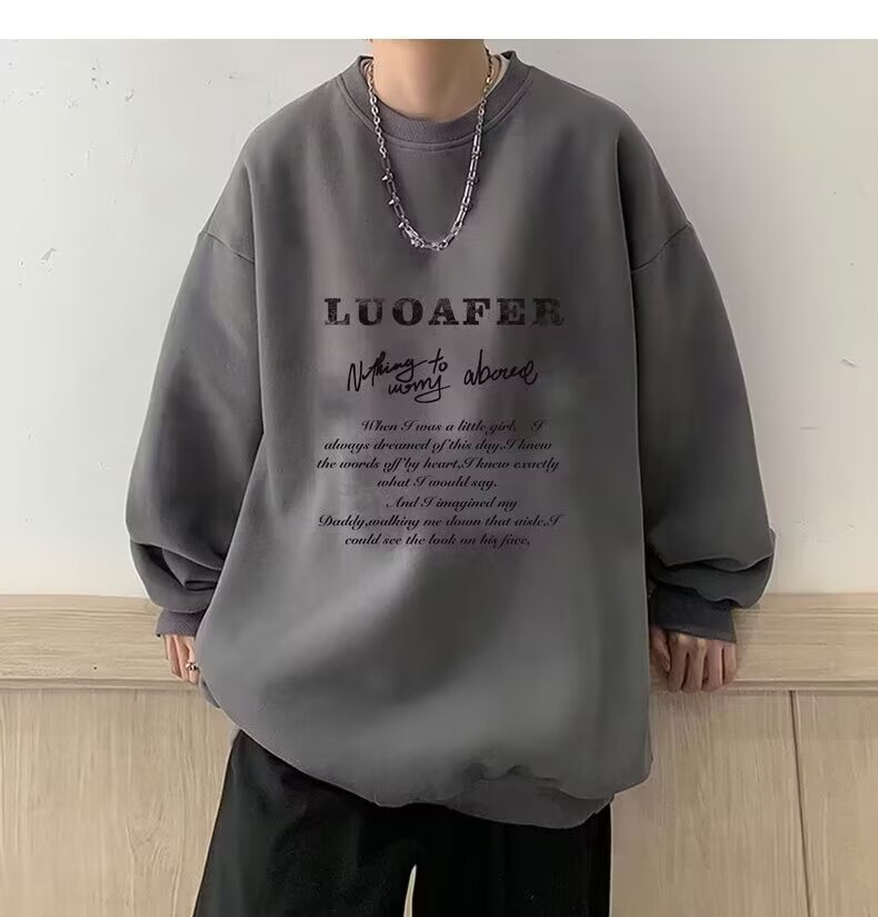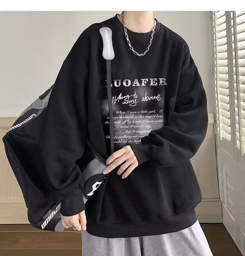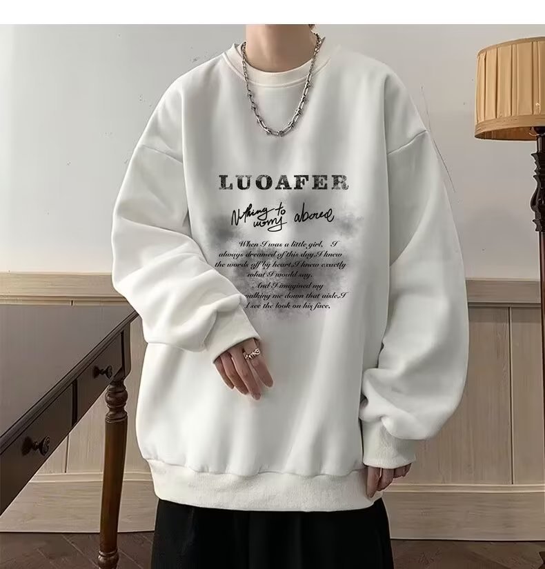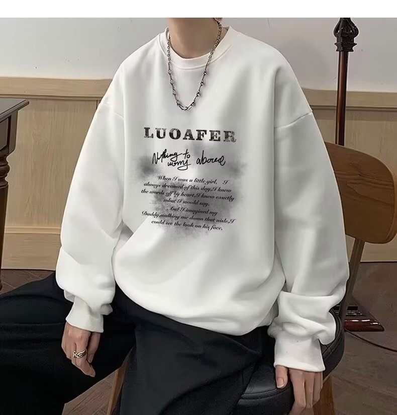 땀 남자 라운드 넥 2024 가을과 겨울 새로운 패션 브랜드 패션 올 매치 프린트 톱 남자 한국 스타일 기모 캐주얼 긴 소매
