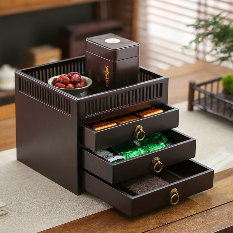 차 상자 단단한 나무 대나무 다층 케이크 상자 서랍-유형 차 케이크 저장 상자 차 캔 가정용 트레이 차 저장 상자