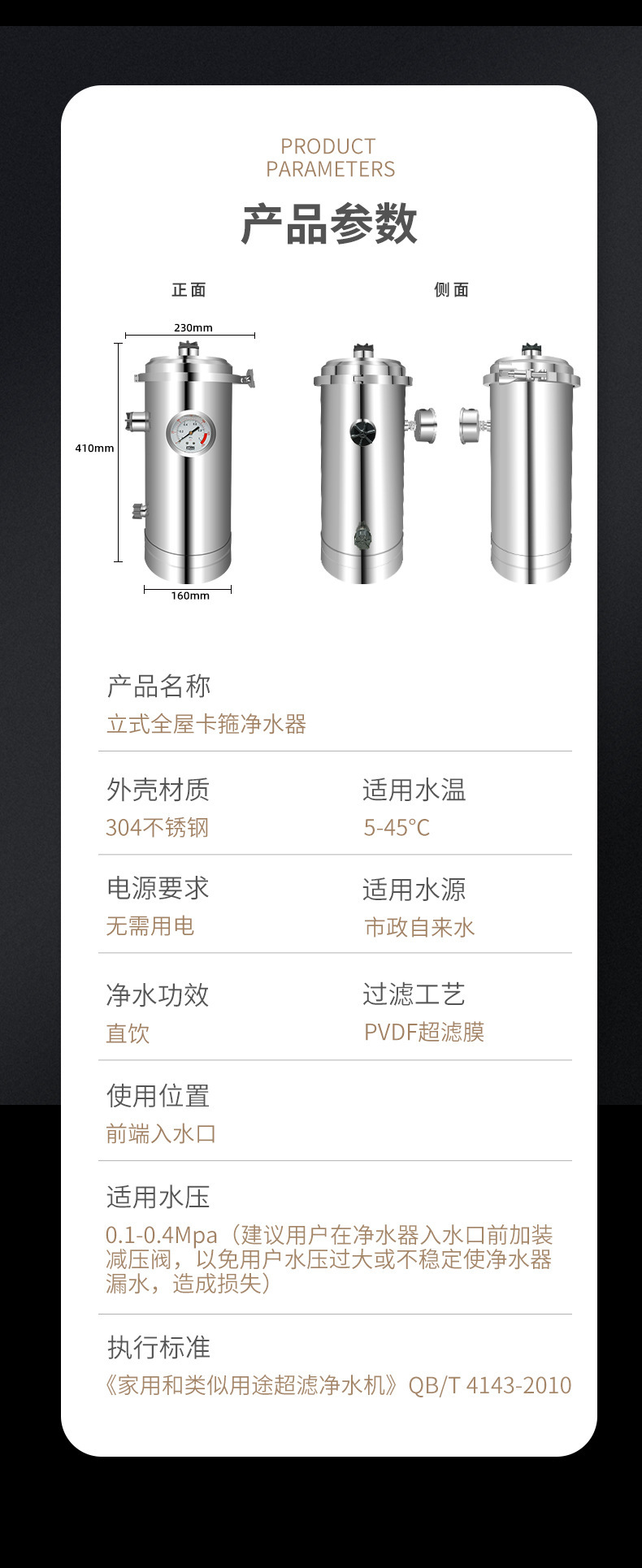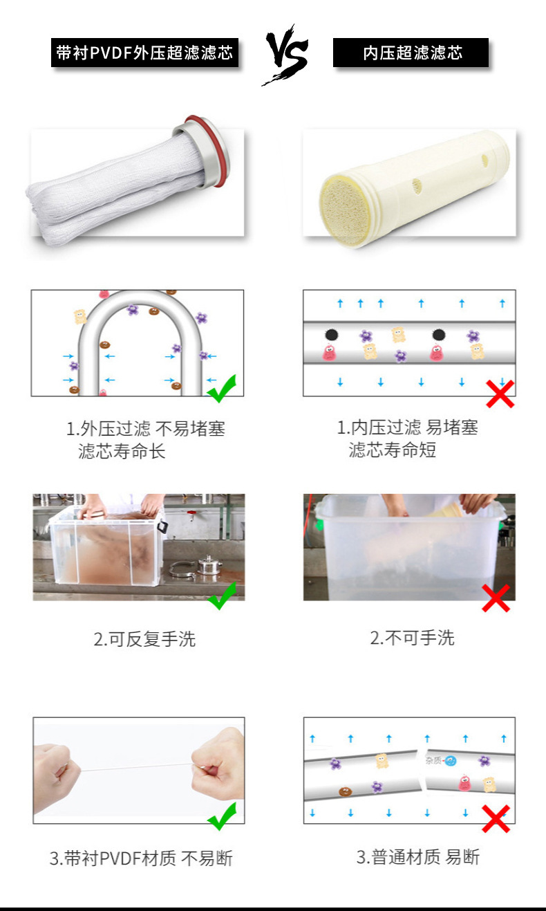 맞춤형 수직 PVDF 손 세척 막 정수기 가구 전체 집 중앙 수돗물 필터 물 초여과 정수기