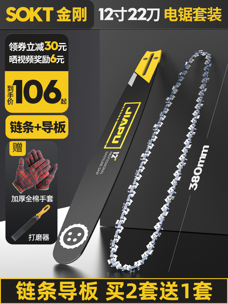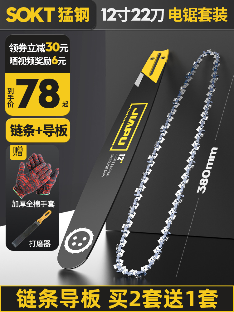 • SOKT 망간강 12인치 22나이프 체인 + 가이드 플레이트 [전기톱/리튬 전기톱 세트]