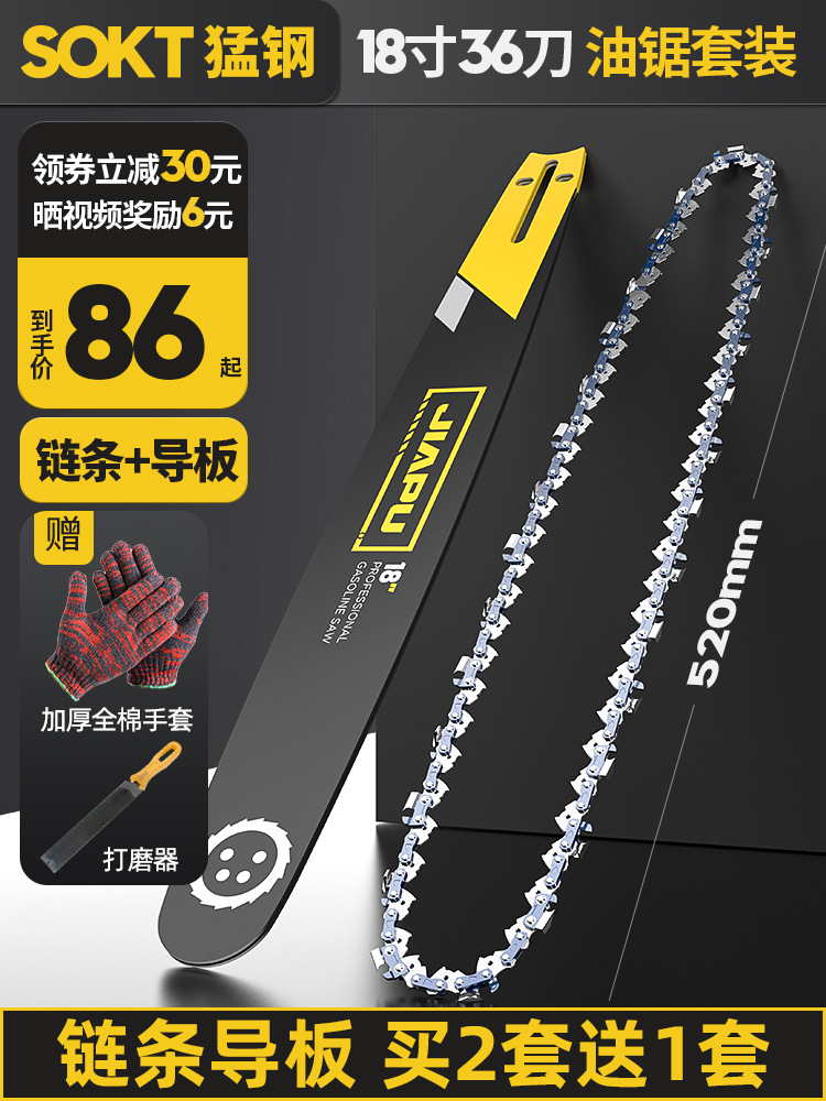• SOKT 망간강 18인치 36나이프 체인 + 가이드 플레이트 [체인톱 세트]