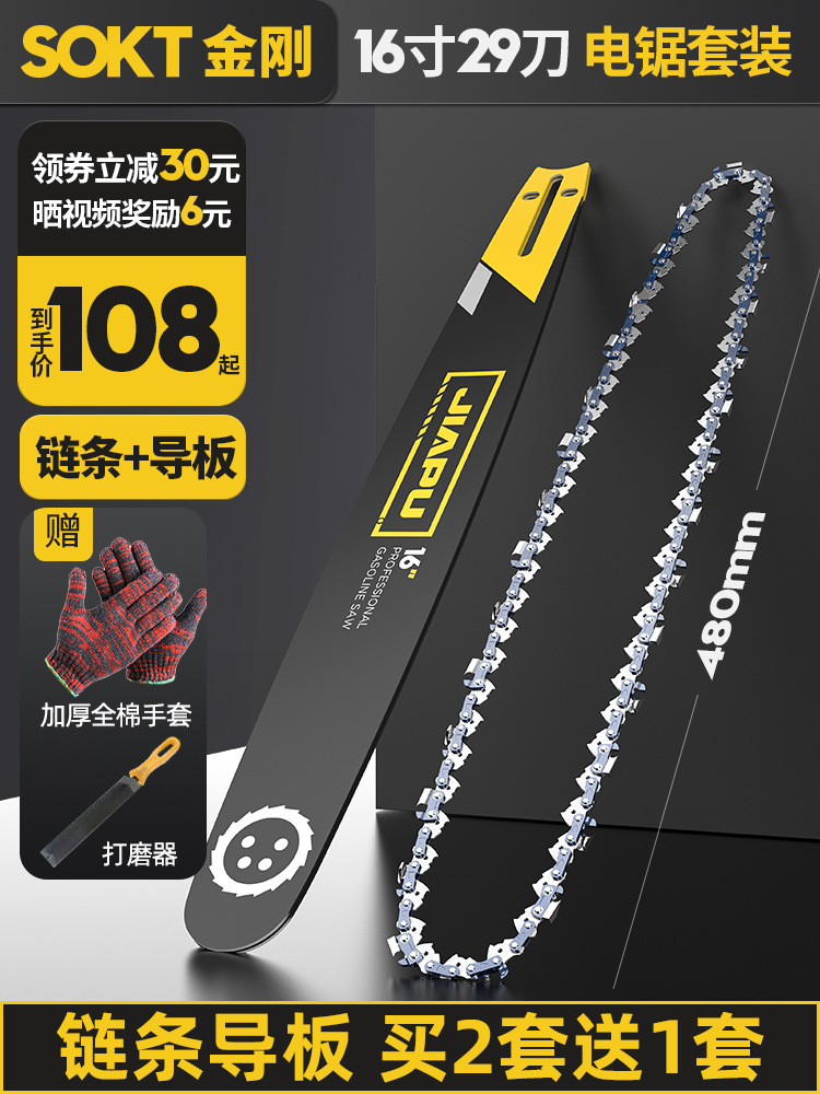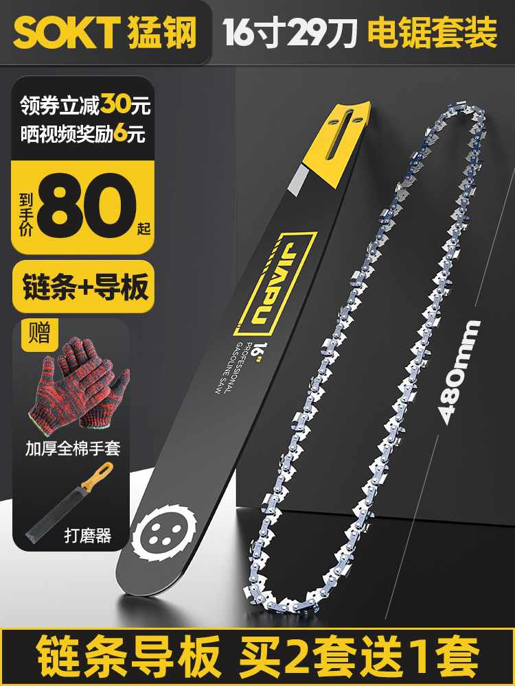 • SOKT 망간강 16인치 29나이프 체인 + 가이드 플레이트 [전기톱/리튬 전기톱 세트]