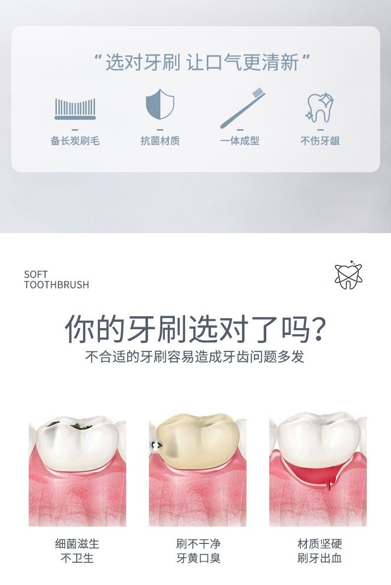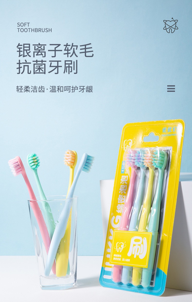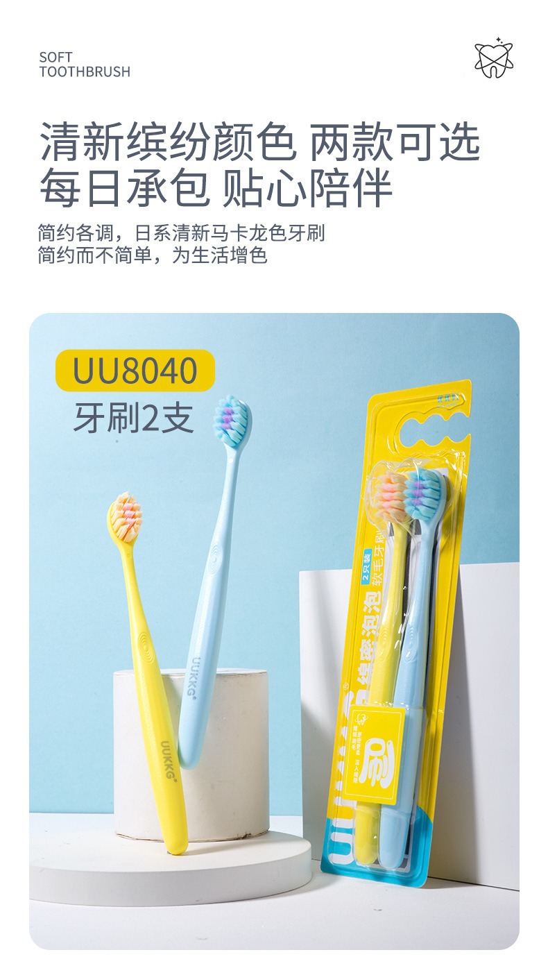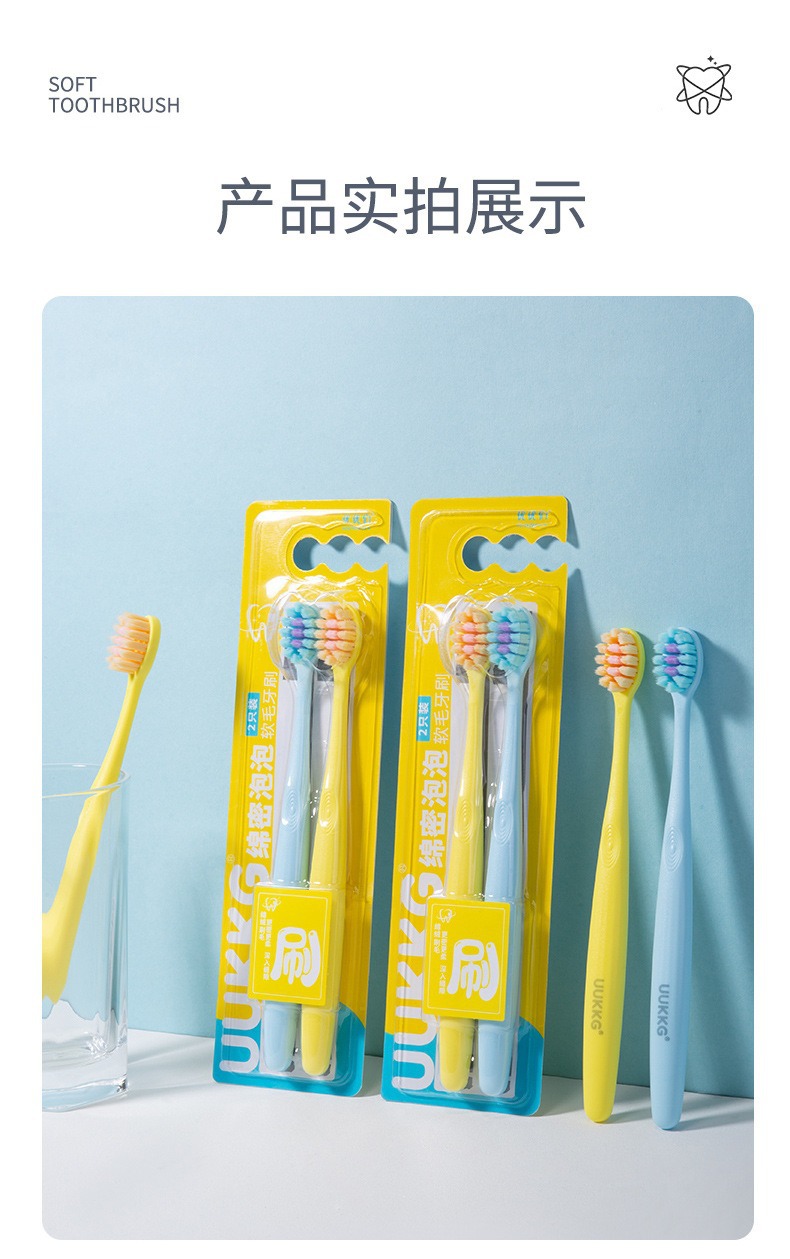 UUKKG 우수한 치은보호 미세 머리 조밀 한 거품 부드러운 머리 깨끗한 치아 가정용 성인 칫솔-2 팩