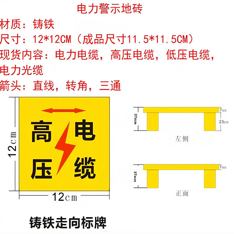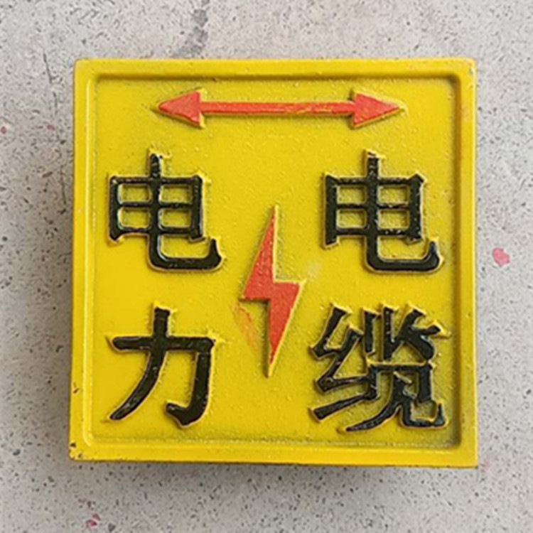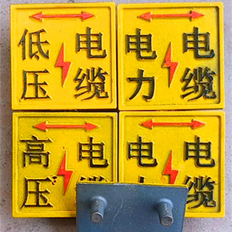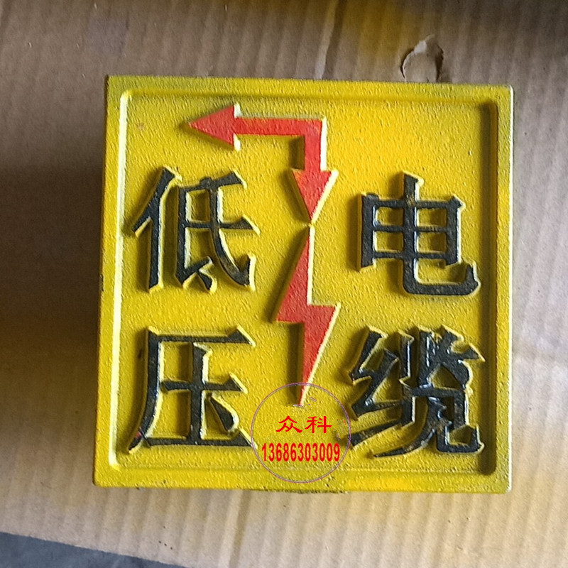 맞춤형 주철 경고 표시 벽돌 높고 낮은 전압 전원 케이블 표지판 파일로드 네일 임베디드 철 사인