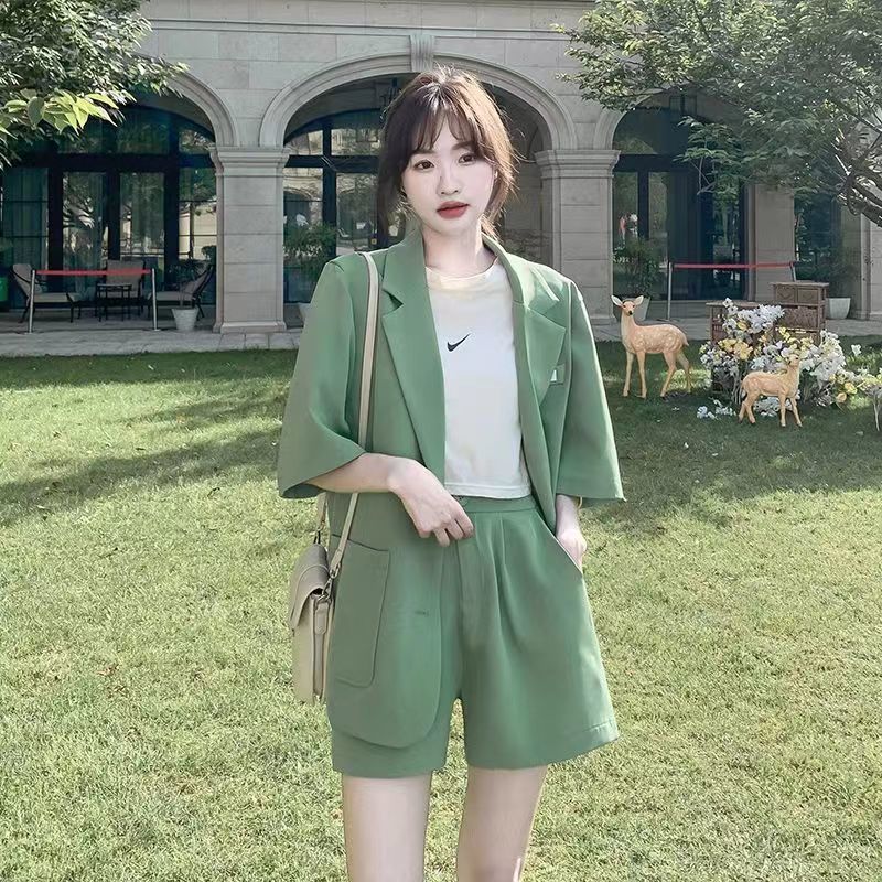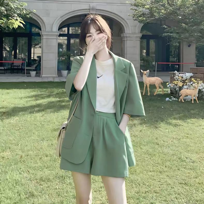 반팔 세트 세트 여자 얇은 2025 여름 유행 새로운 캐주얼 니쉬 한국식 세트 재킷