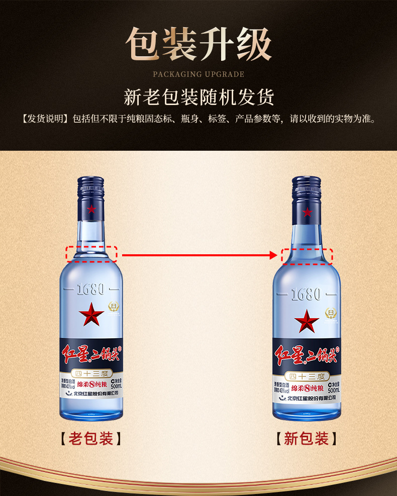 베이징 일반 공장 공식 승인 레드 스타 Erguotou 43/53 블루 병 Mianrou 8 500/750ml 순수 곡물 주류