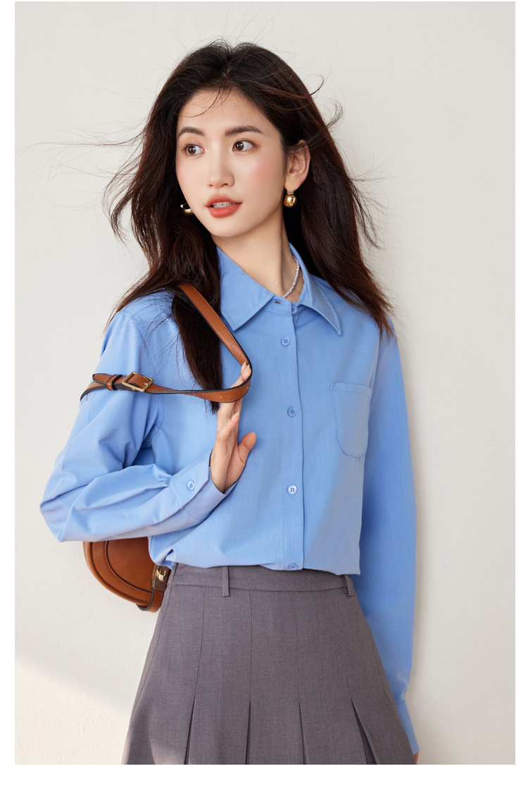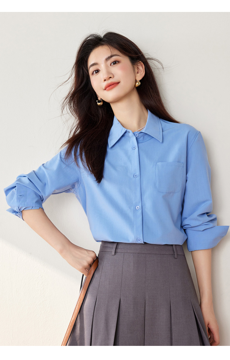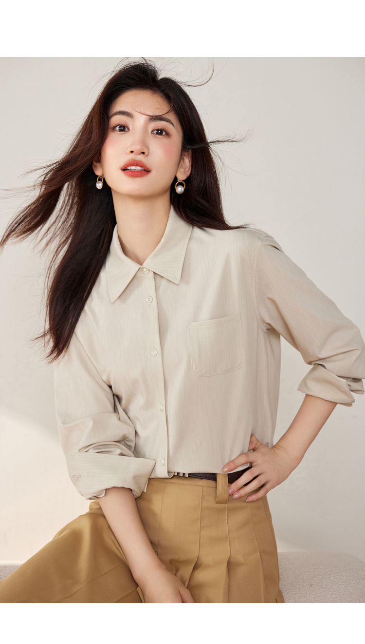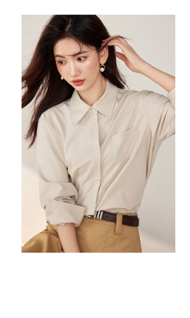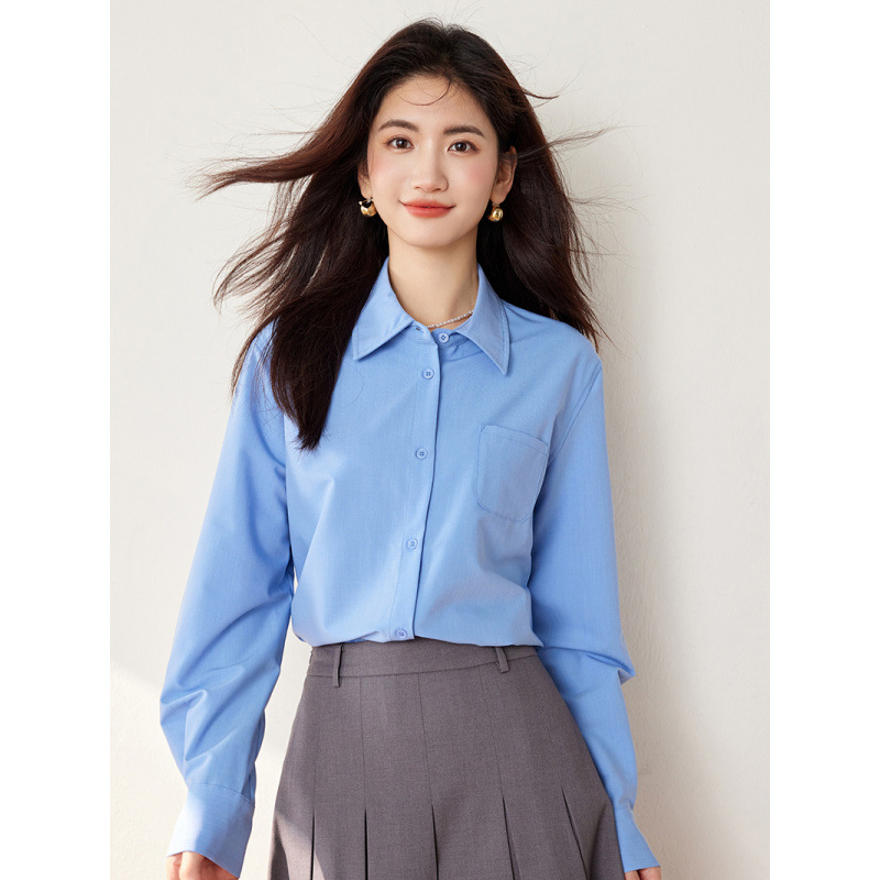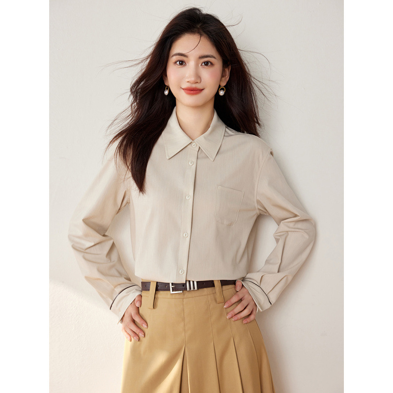 리얼 샷 간단한 올 매치 셔츠 2025 봄 아카데미 스타일 단색 긴 소매 셔츠스토어 가기