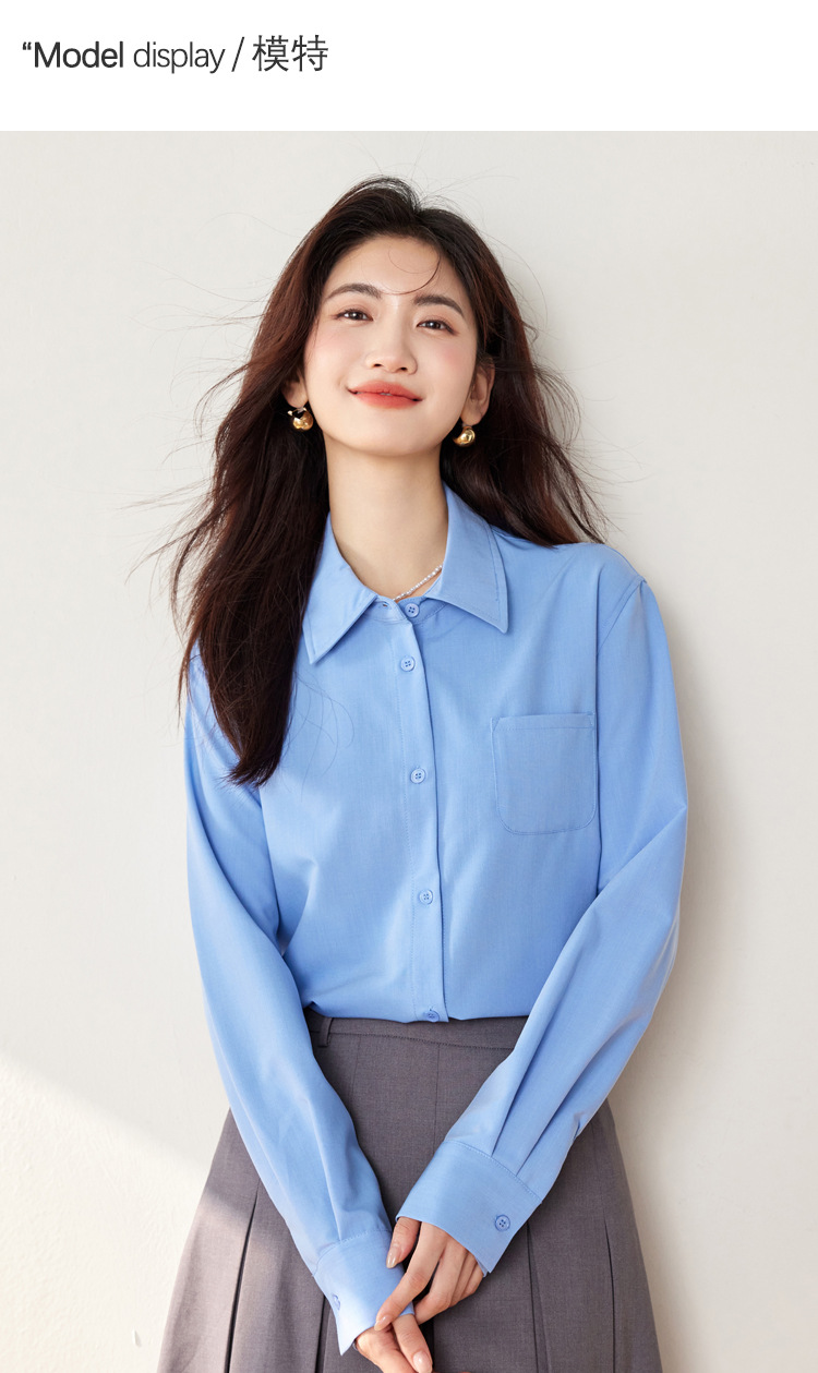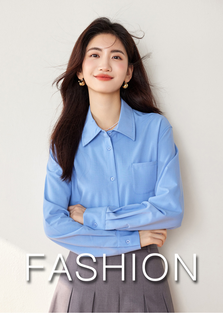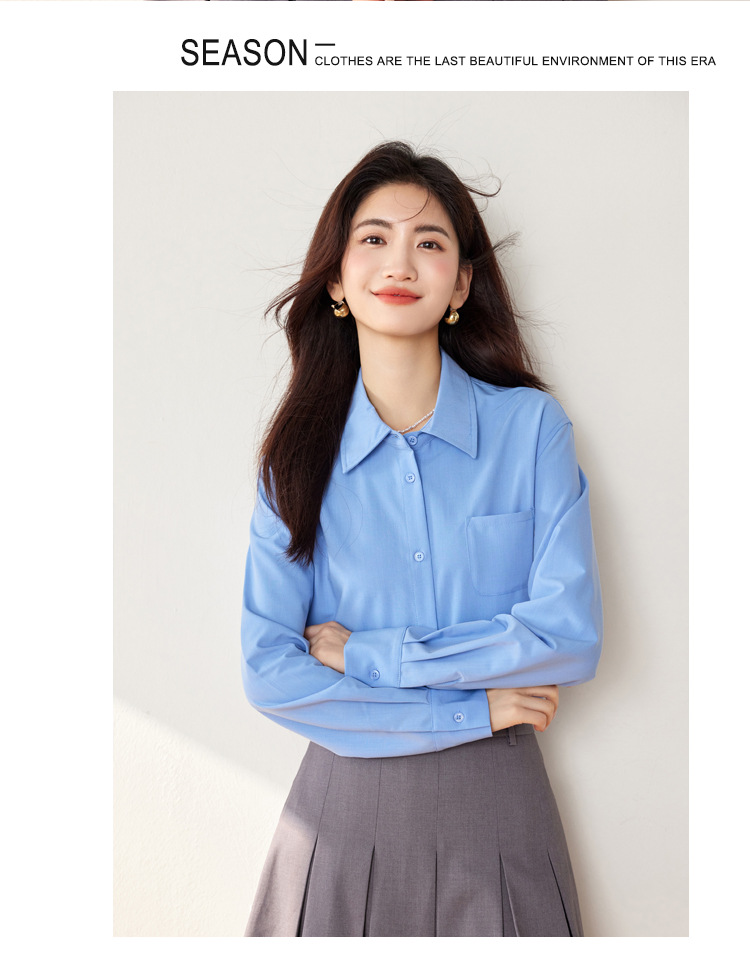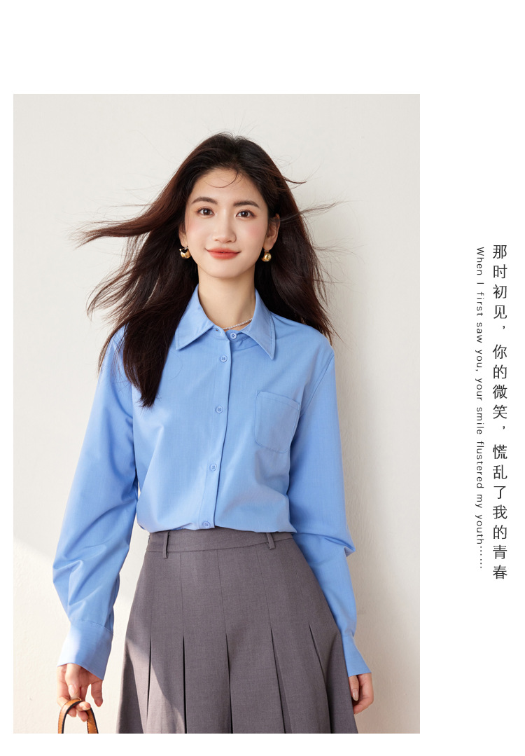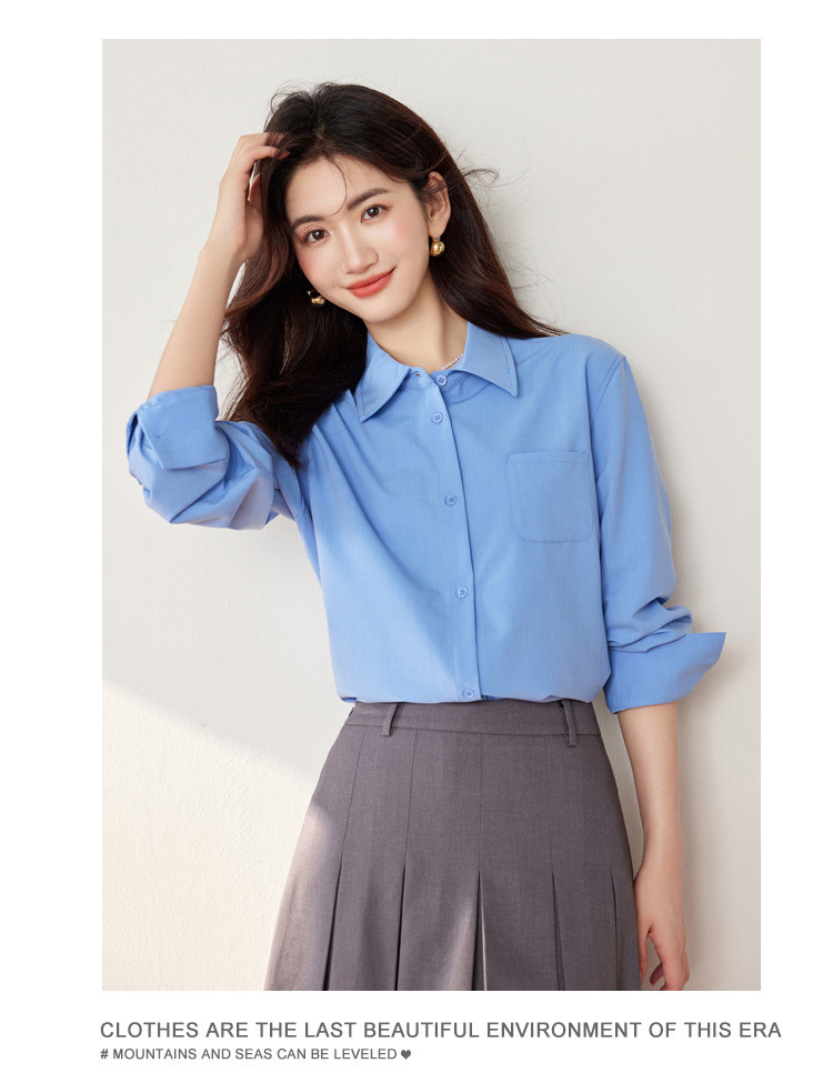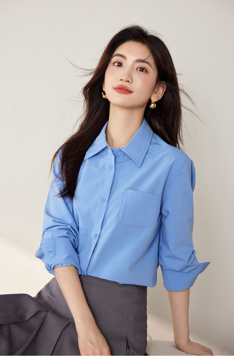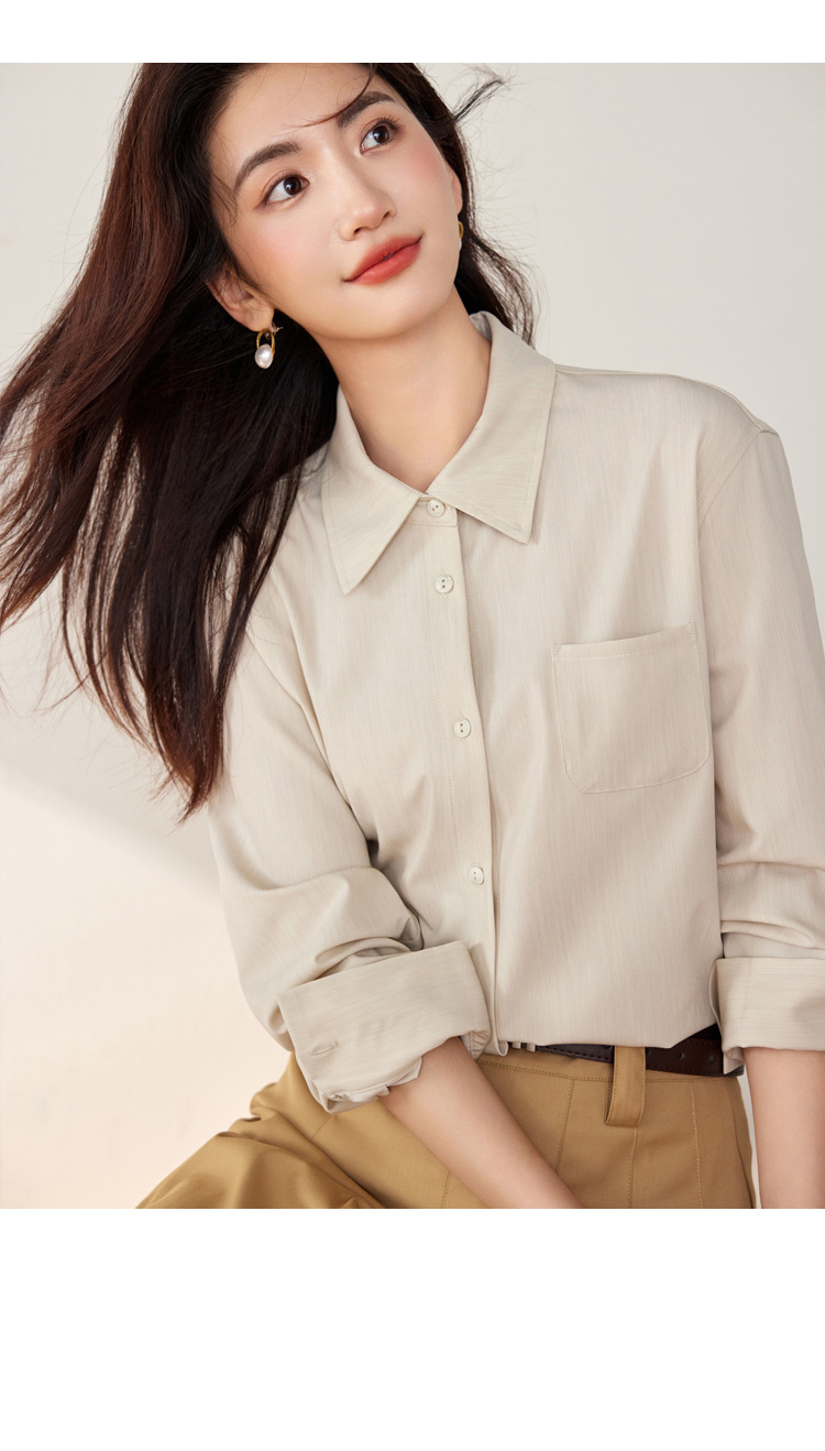 리얼 샷 간단한 올 매치 셔츠 2025 봄 아카데미 스타일 단색 긴 소매 셔츠스토어 가기