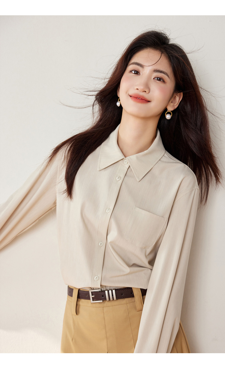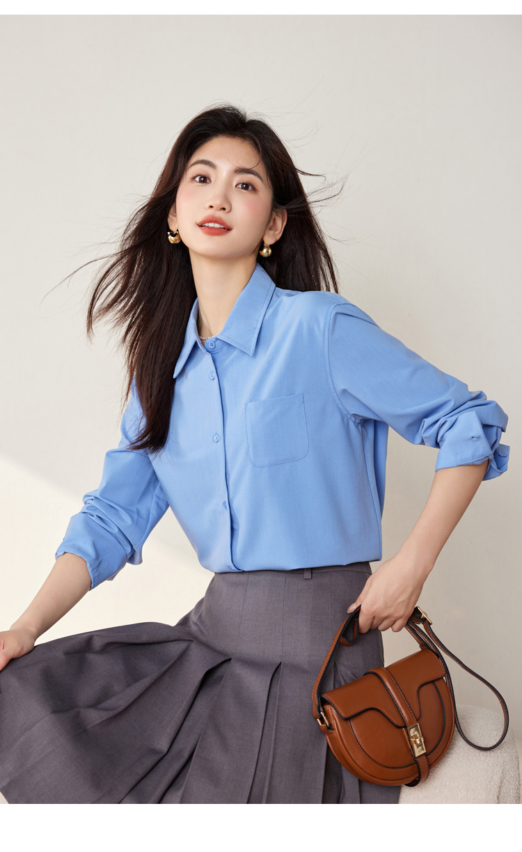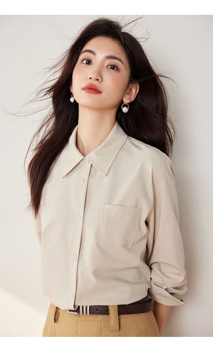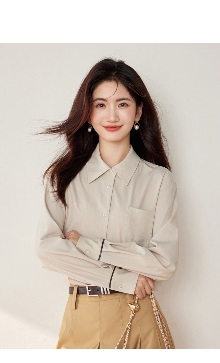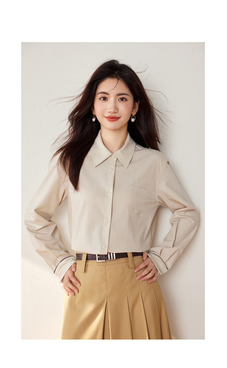 리얼 샷 간단한 올 매치 셔츠 2025 봄 아카데미 스타일 단색 긴 소매 셔츠