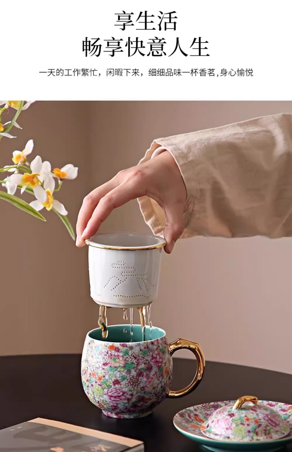 절묘한 차 컵 고급 고급 고급 고급 사무실 차 분리 여성의 특수 세라믹 개인 컵