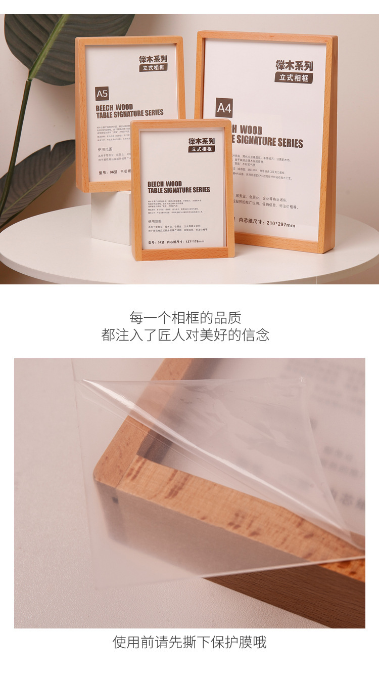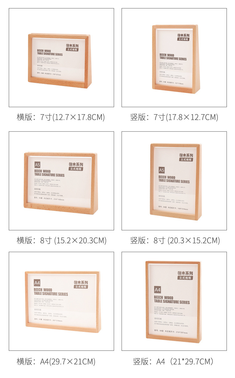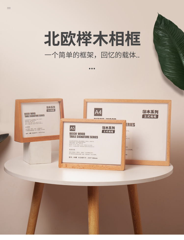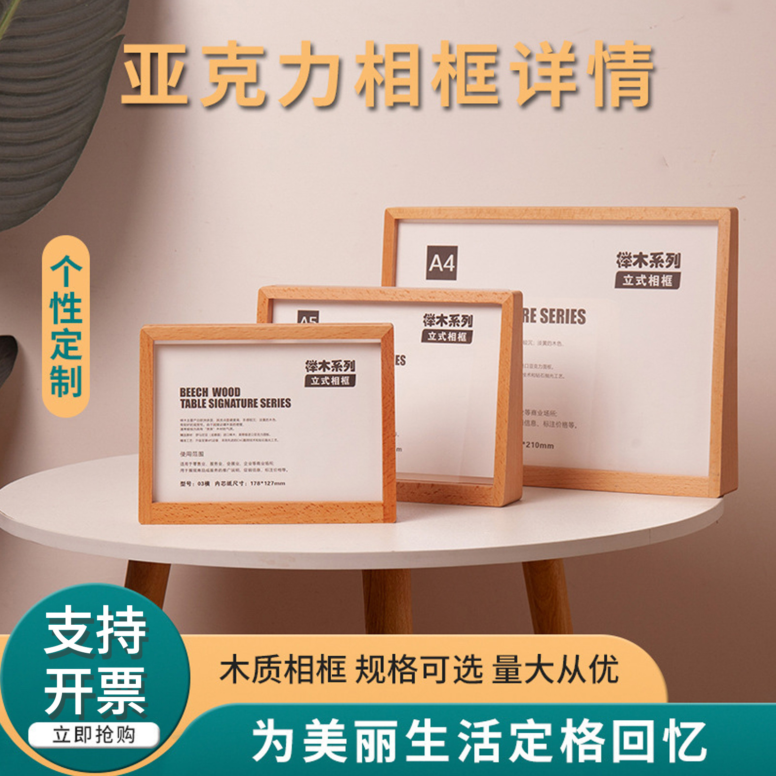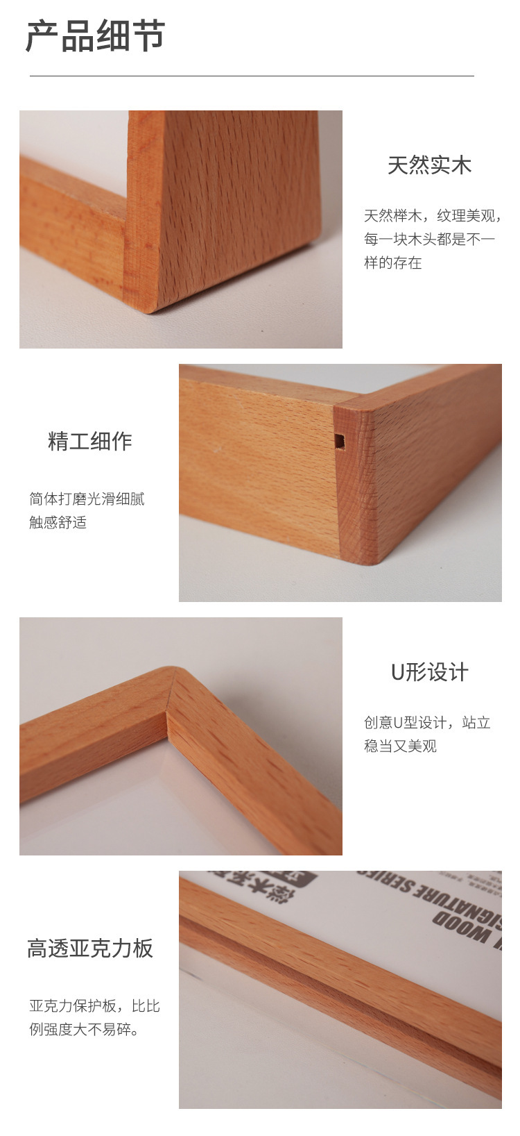창조적 인 너도밤 나무 테이블 베벨 테이블 카드 아크릴 테이블 사인 사진 프레임 투명 사진 테이블 카드 단단한 나무 스탠드 카드 디스플레이 카드