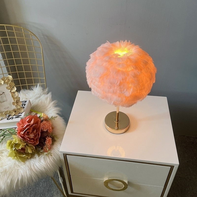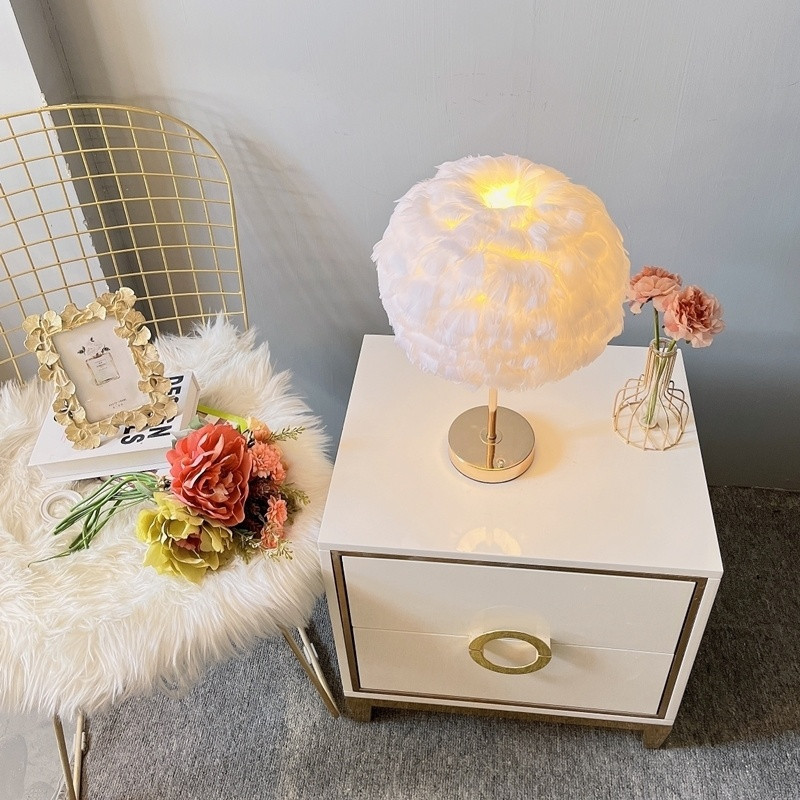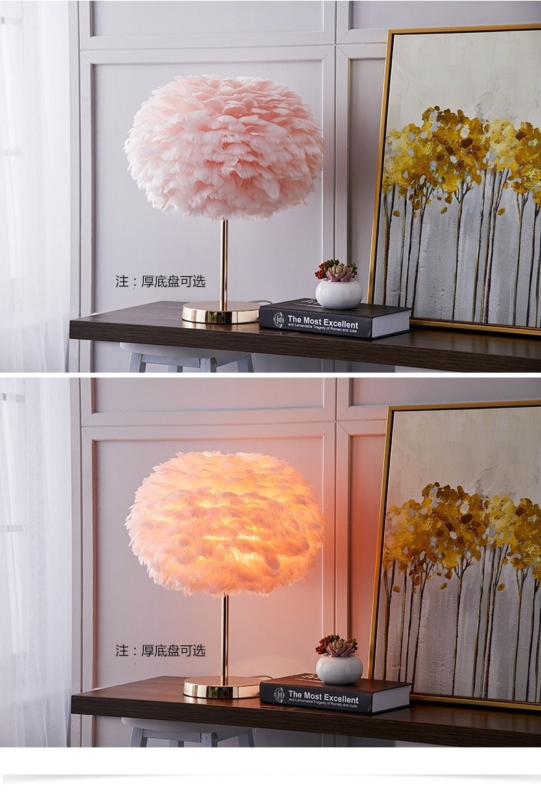 새로운 인터넷 연예인 조명 깃털 테이블 램프 패션 북유럽 거실 장식 램프 소녀의 침실 램프 창조적 인 침대 옆스토어 가기