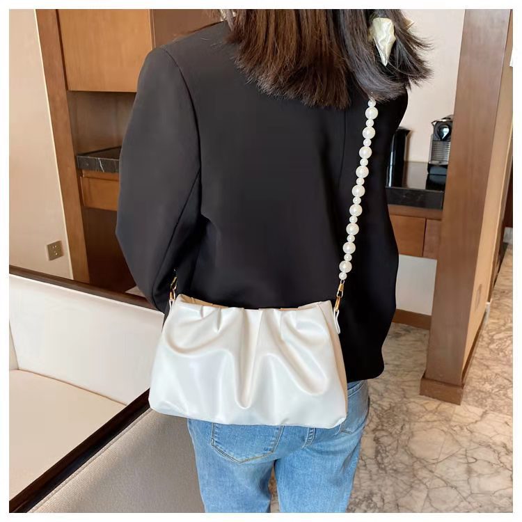 여성을 위한 패셔너블한 구름 겨드랑이 가방, 진주 주름 디자인 가방, 트렌디하고 다재다능하며 상큼한 기질, 여성용 숄더백스토어 가기