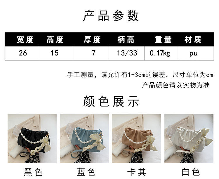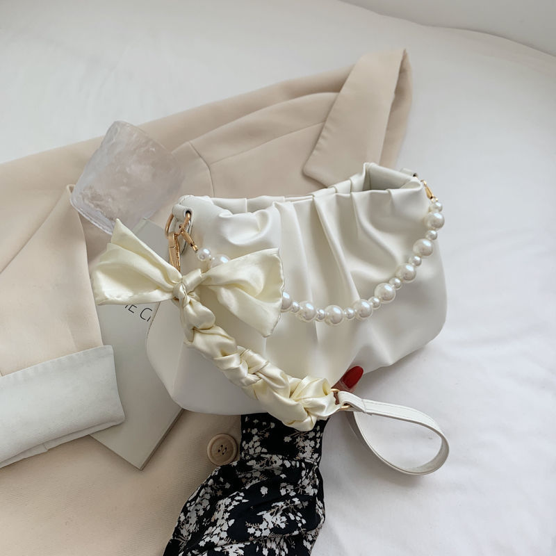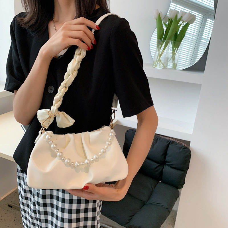 여성을 위한 패셔너블한 구름 겨드랑이 가방, 진주 주름 디자인 가방, 트렌디하고 다재다능하며 상큼한 기질, 여성용 숄더백