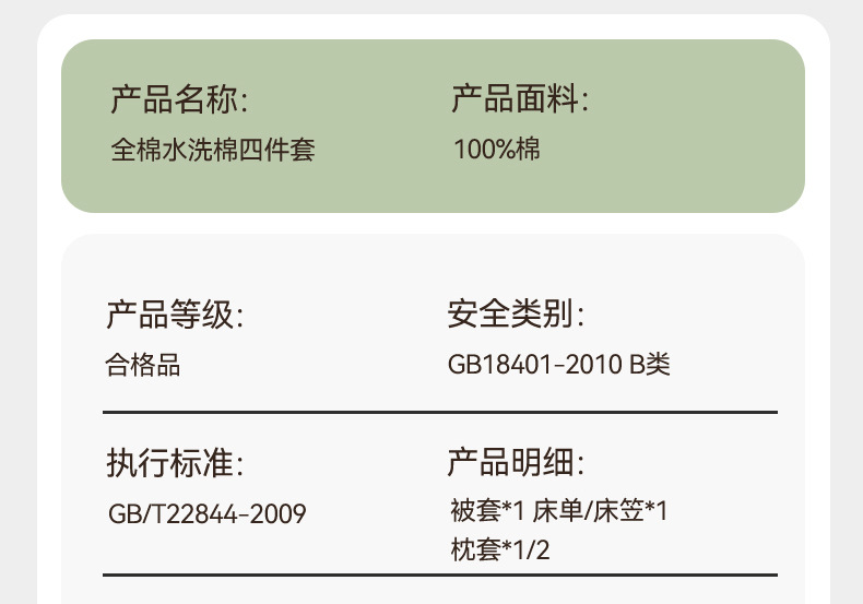 • 1.8m 침대 [시트 4개 세트] - 200*230cm 이불심에 적합