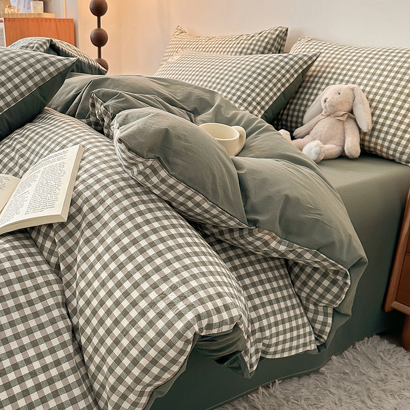 씻은 코튼 퀼트 커버 싱글 피스 코튼 침대 시트 퀼트 커버 150x200x230 단일 기숙사 3 조각 세트 여름