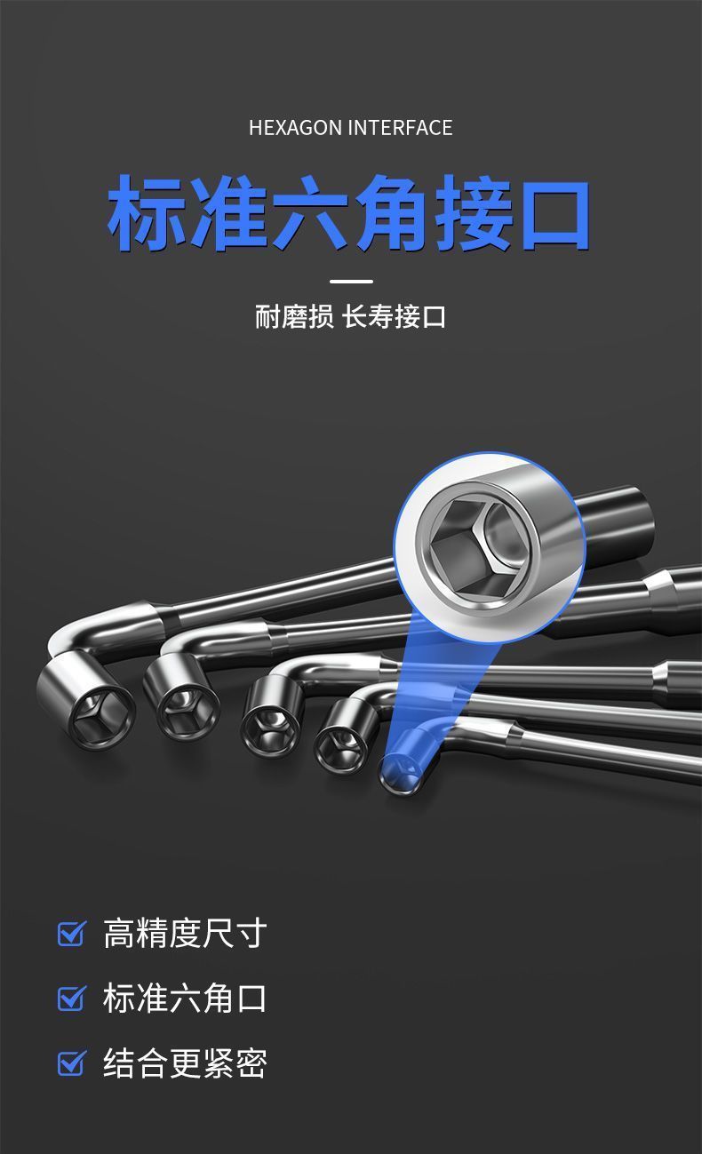 M & Eagle L 자형 소켓 렌치 7 자형 파이프 타입 양단 팔꿈치 천공 외부 육각형 소켓 파이프 렌치 세트