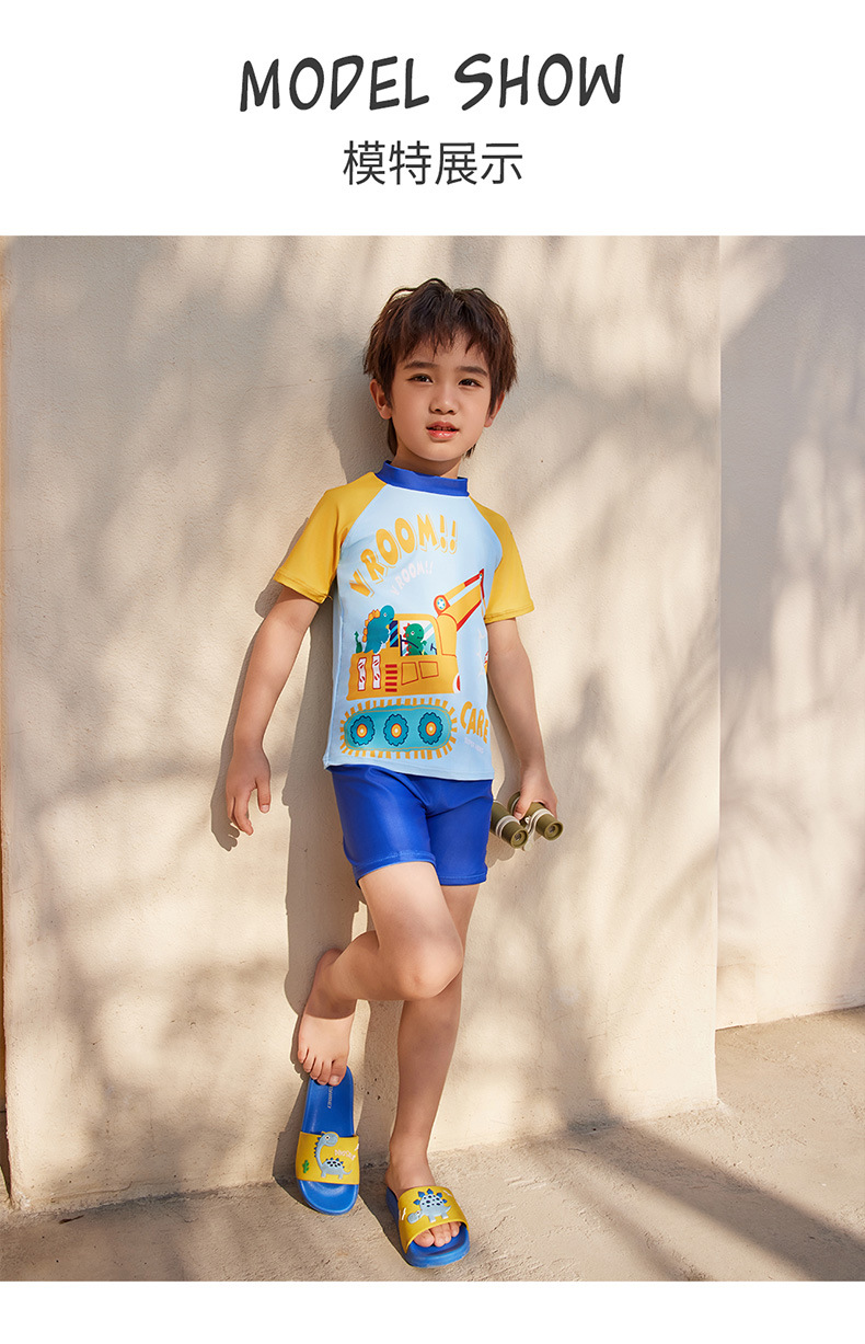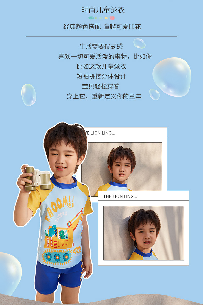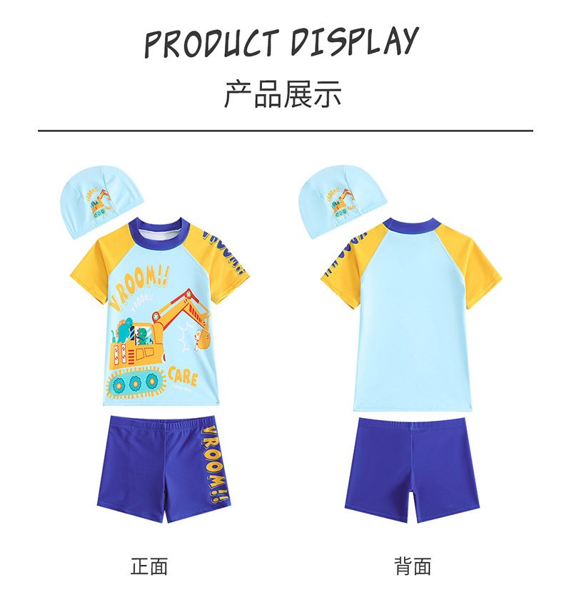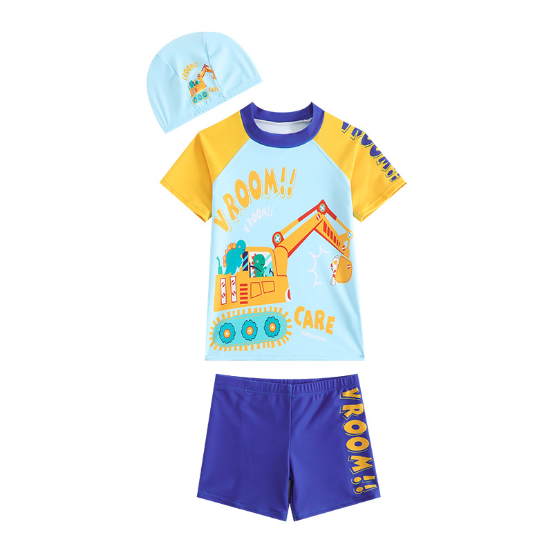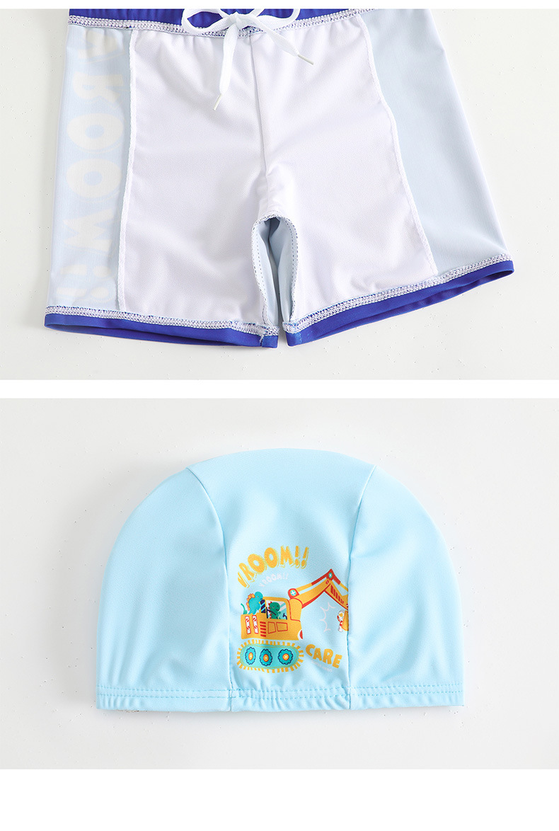 새로운 소년 수영복 어린이 수영복 만화 반팔 3 피스 세트 아기 소년 스플릿 소년 수영복 수영 모자