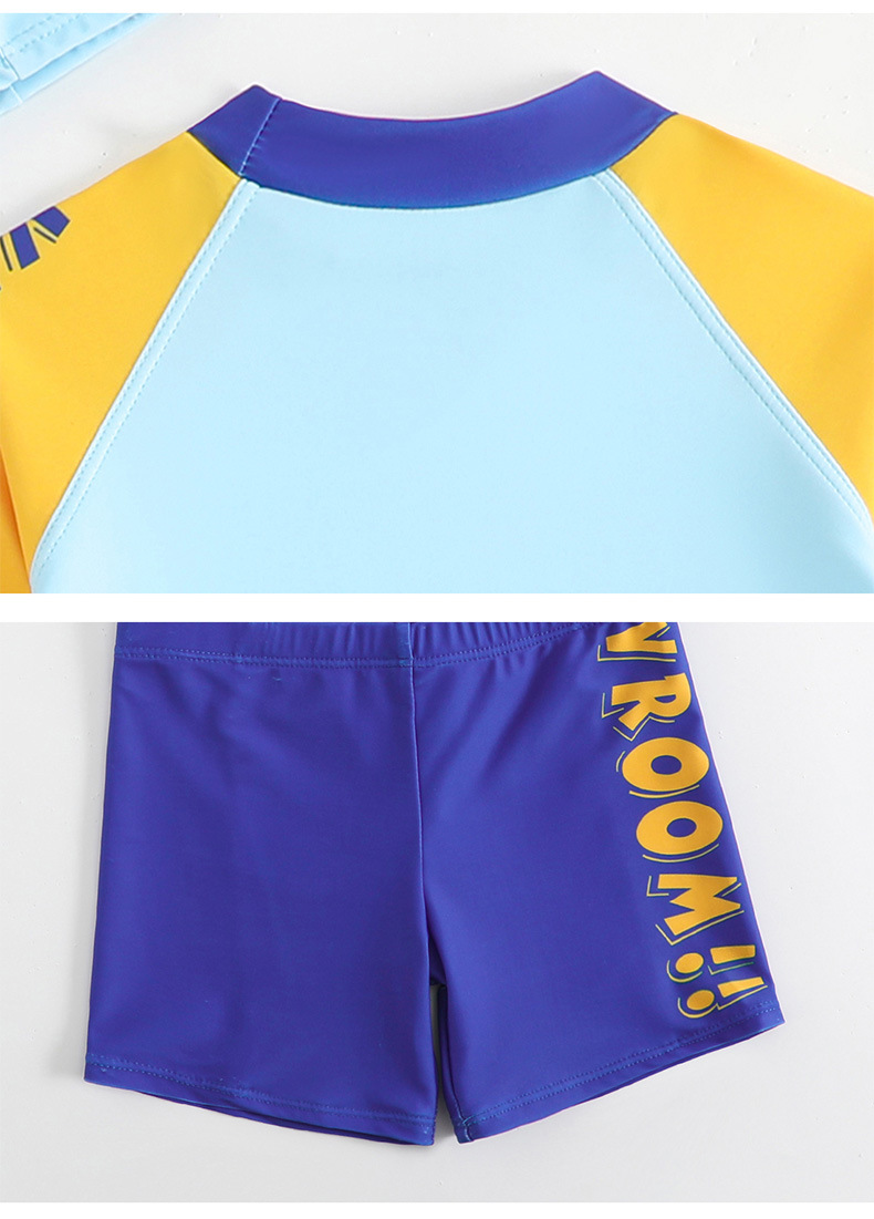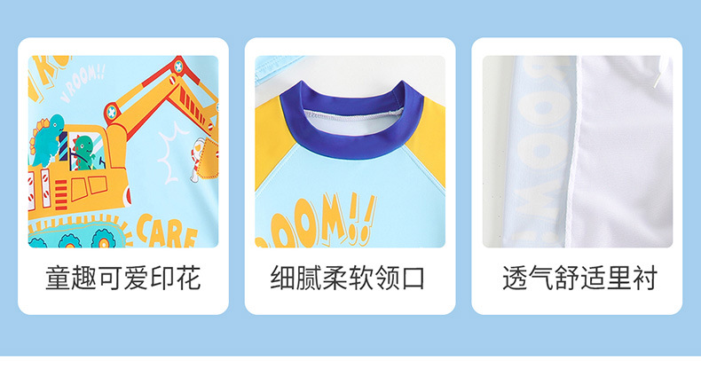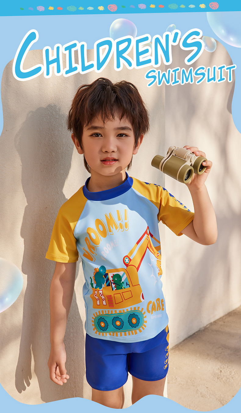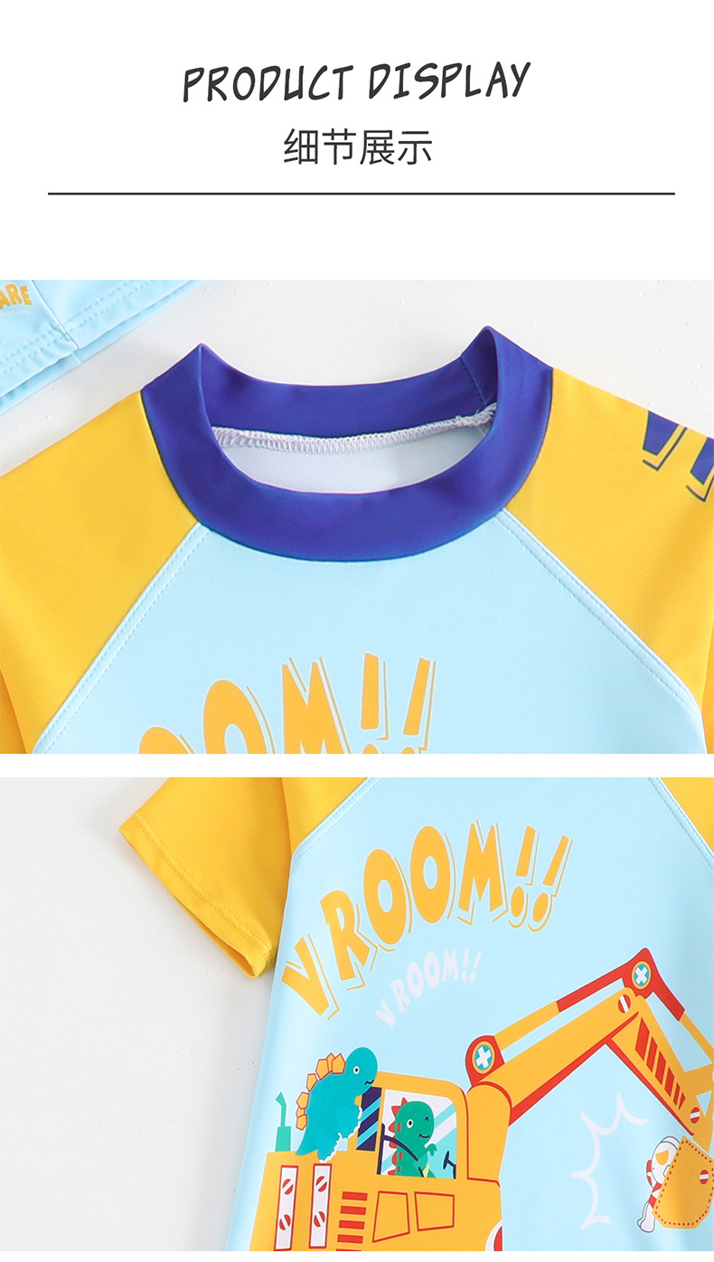 새로운 소년 수영복 어린이 수영복 만화 반팔 3 피스 세트 아기 소년 스플릿 소년 수영복 수영 모자