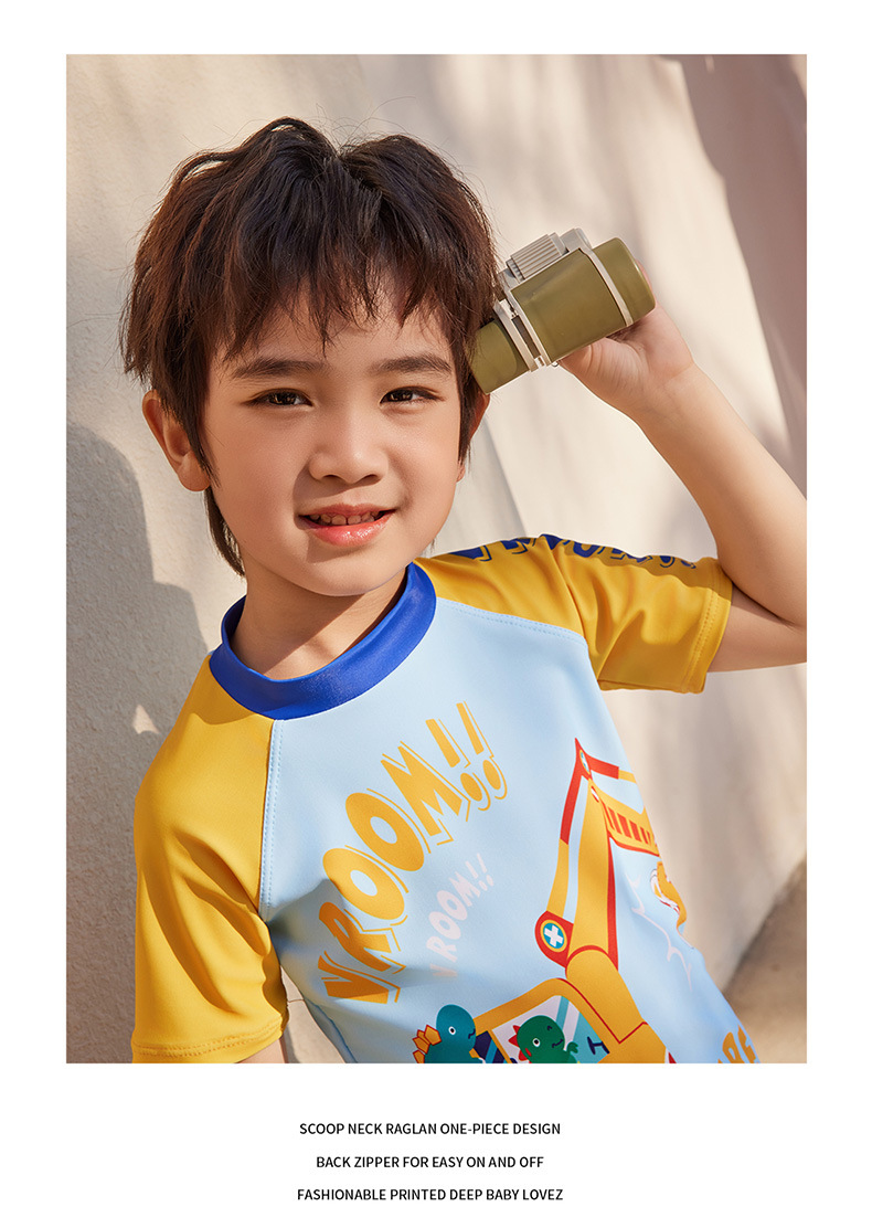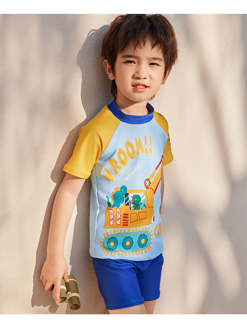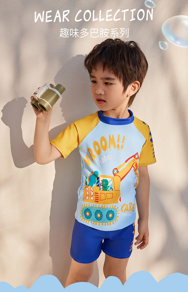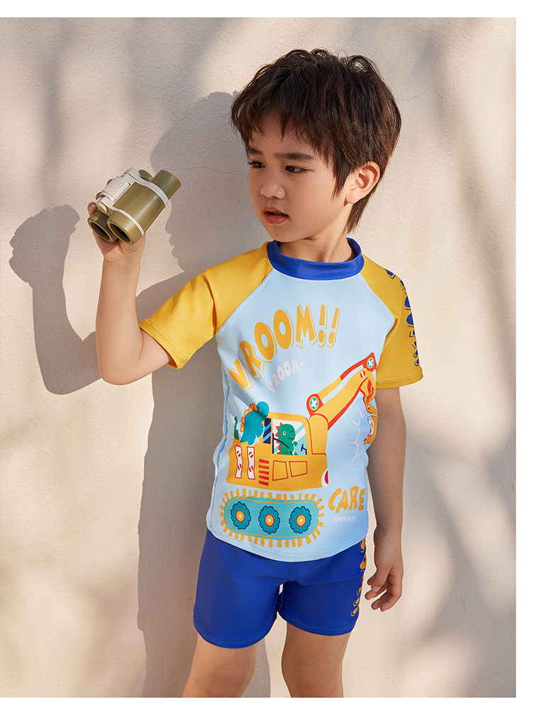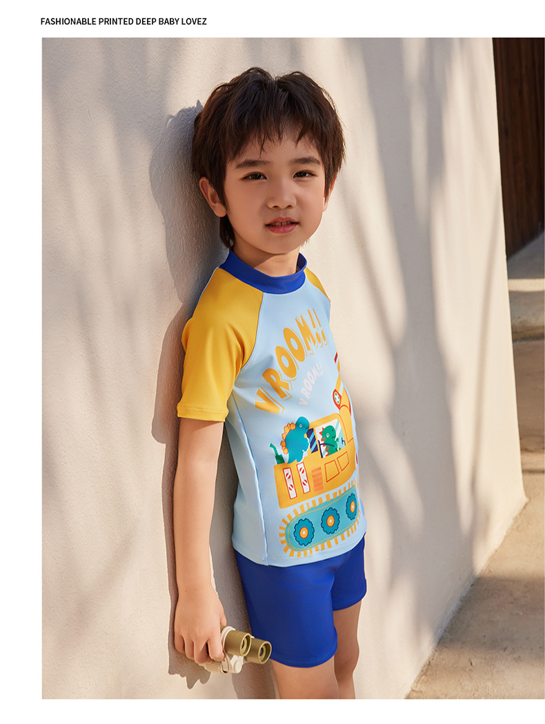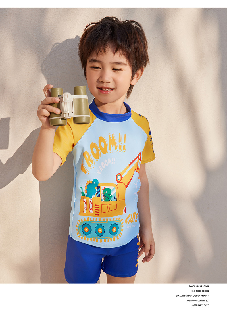 새로운 소년 수영복 어린이 수영복 만화 반팔 3 피스 세트 아기 소년 스플릿 소년 수영복 수영 모자스토어 가기
