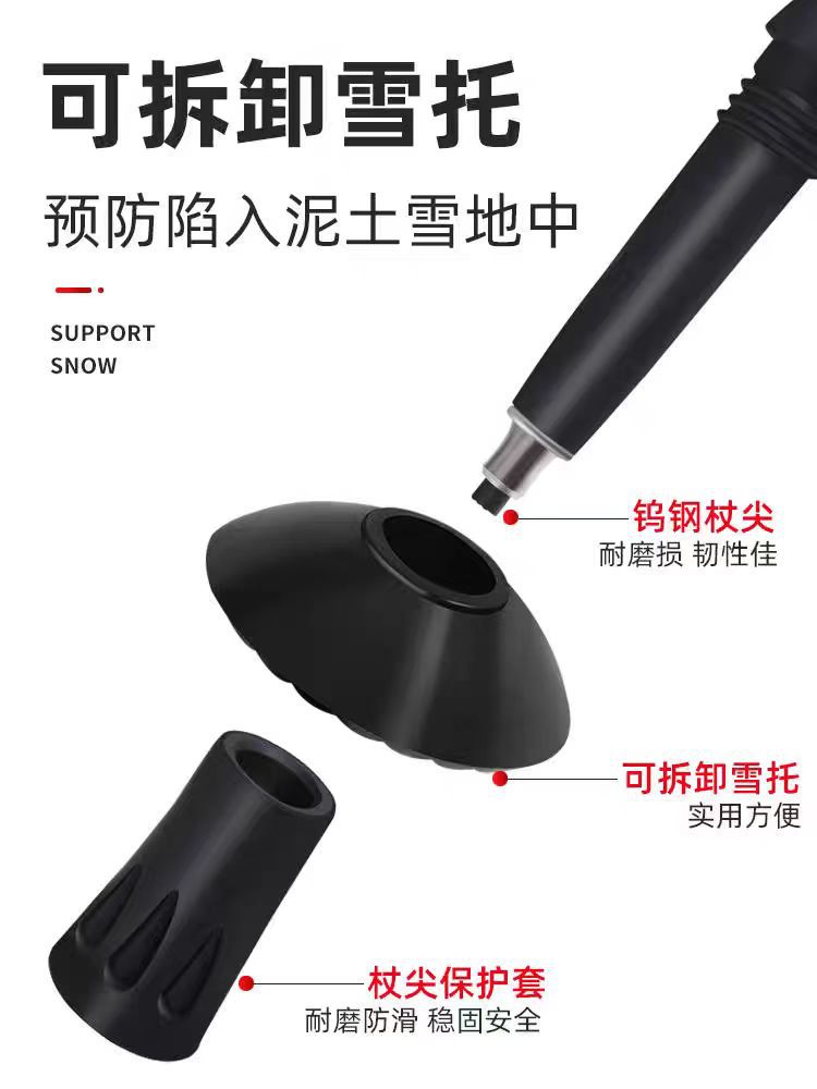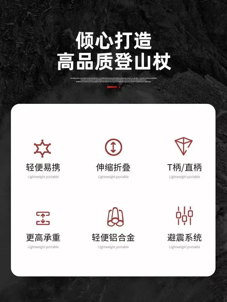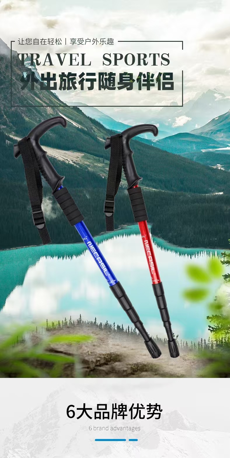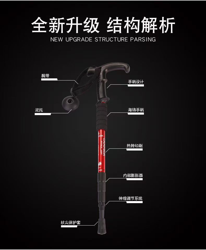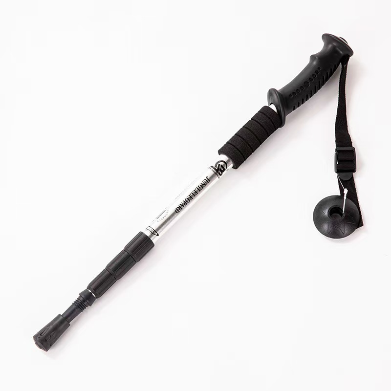 4단 곡선 손잡이와 직선 손잡이가 있는 충격 흡수 고강도 초경량 알루미늄 합금 등산 스틱 도매 재고 있음