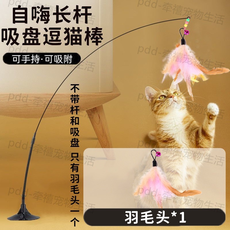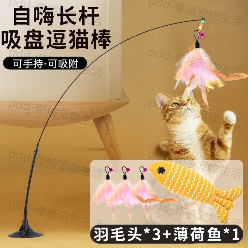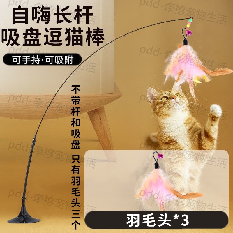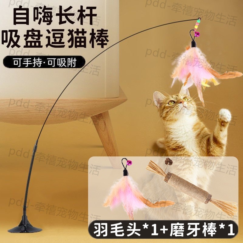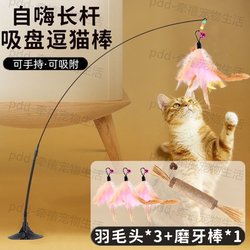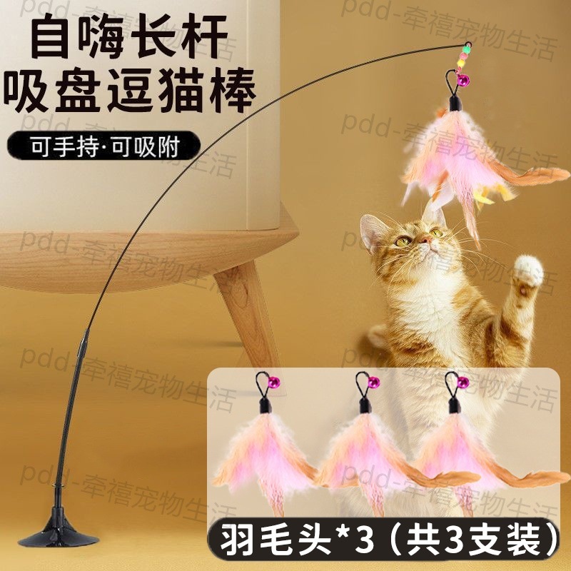 • [오렌지 핑크 3색 깃털*1] 강력한 흡착컵 + 고양이 놀리는 막대