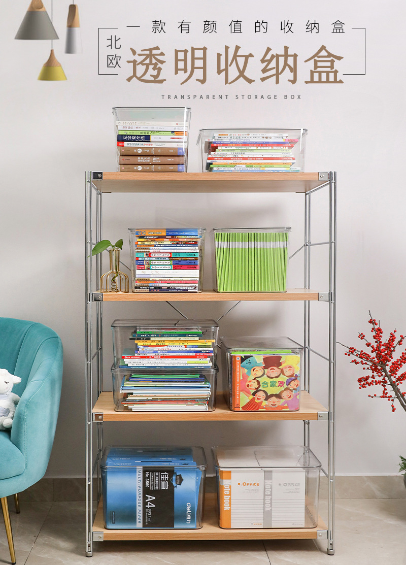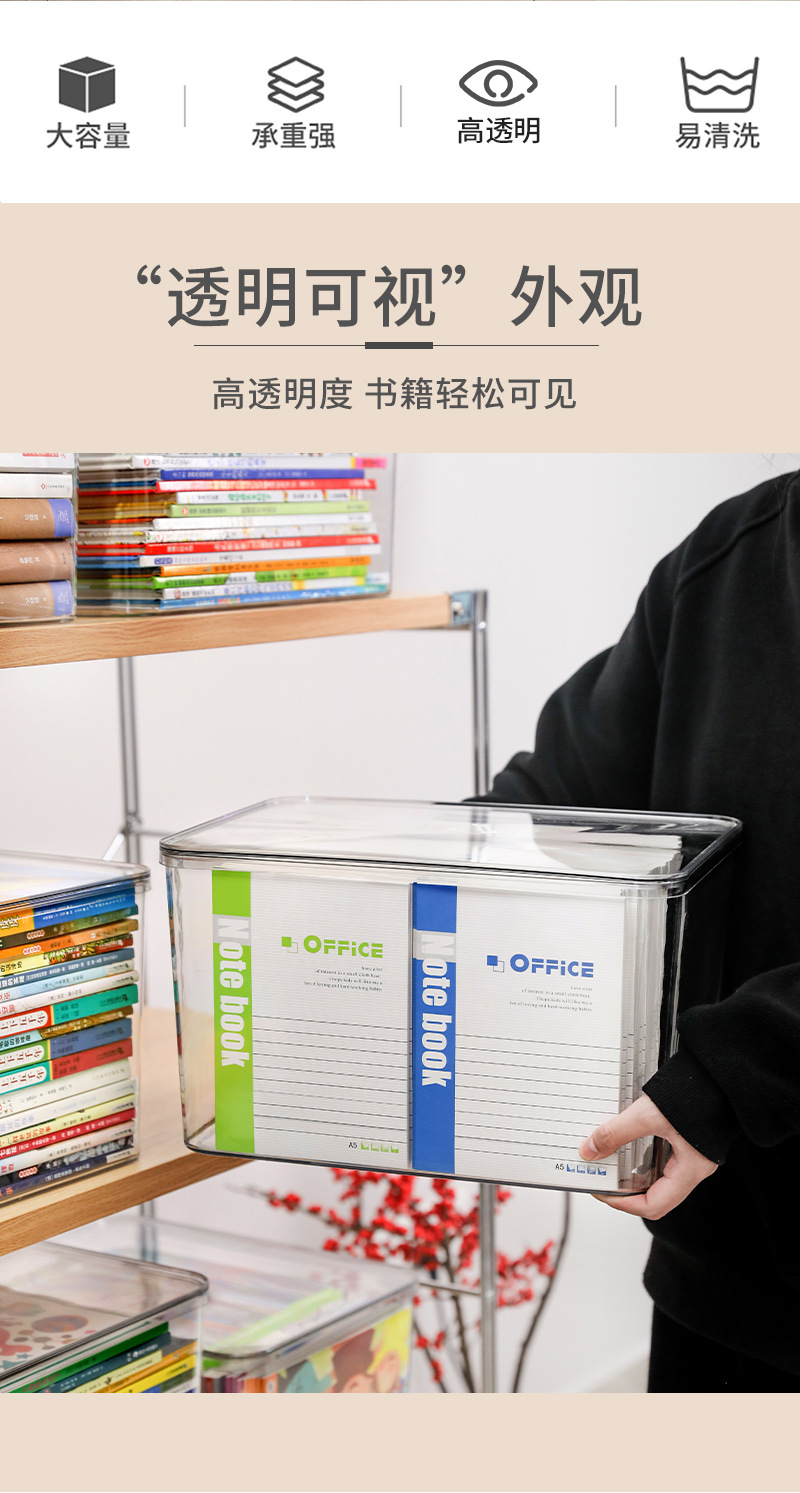 높은 투명 저장 상자 큰 두꺼운 장난감 저장 상자 뚜껑 밀봉 된 저장 상자 간식 책 정렬