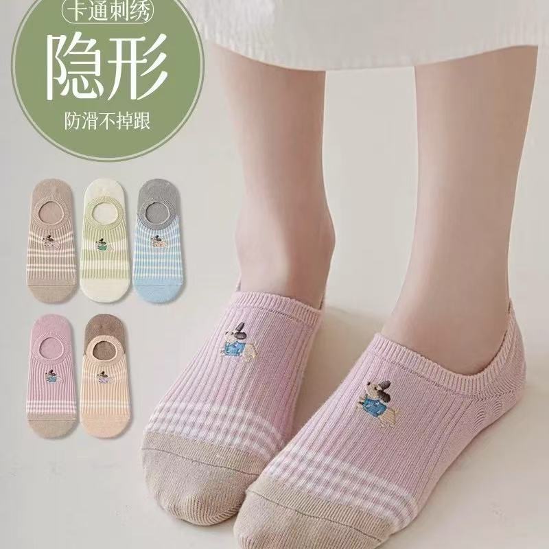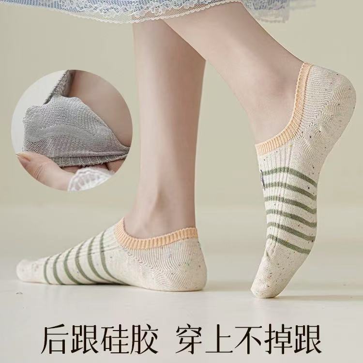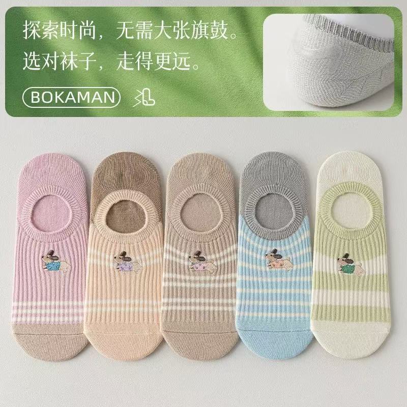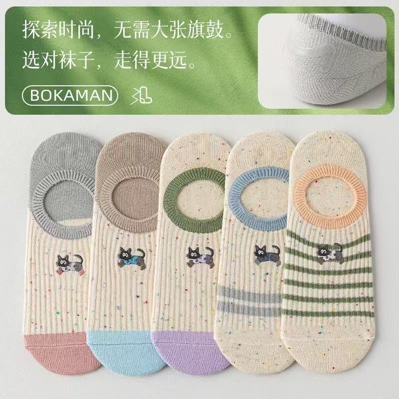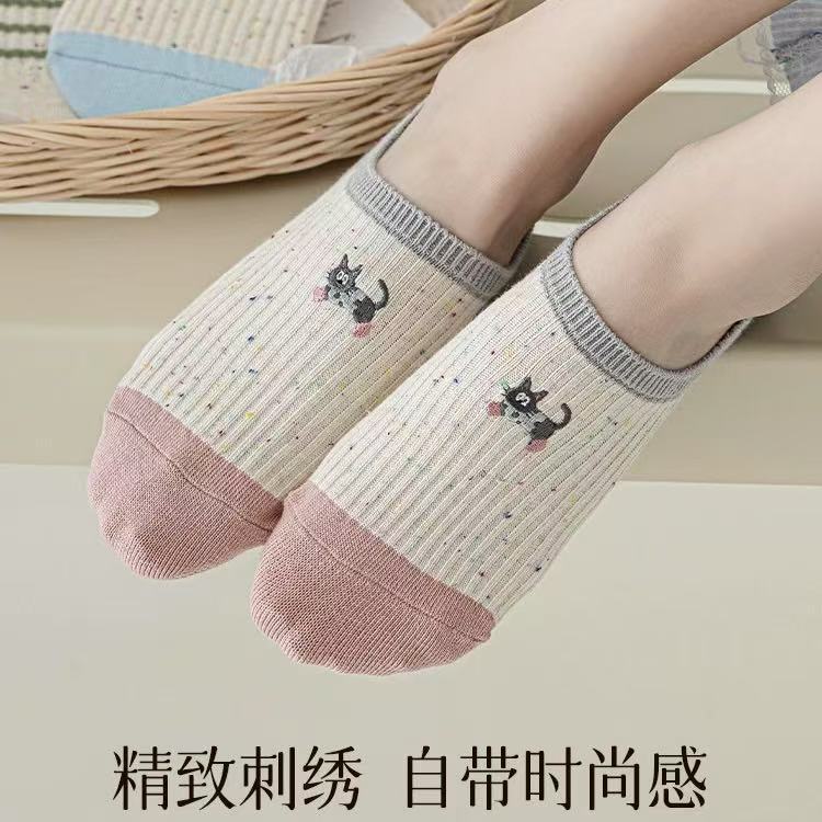 Ins 더블 바늘 새끼 고양이 자수 포인트 원사 실리콘 안티 드롭 보트 양말 땀 흡수성 일본 스타일 귀여운 보이지 않는 양말 어린이 봄과 여름스토어 가기