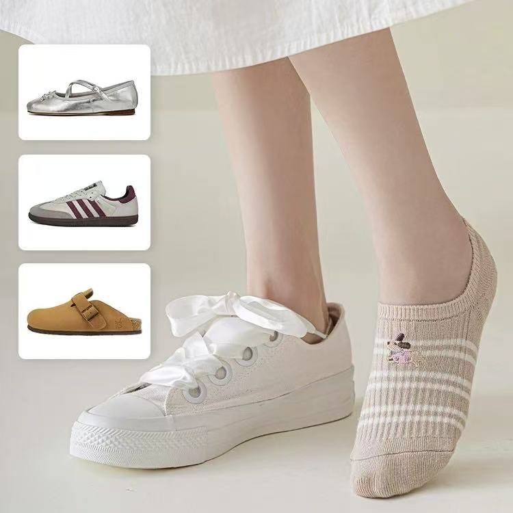 Ins 더블 바늘 새끼 고양이 자수 포인트 원사 실리콘 안티 드롭 보트 양말 땀 흡수성 일본 스타일 귀여운 보이지 않는 양말 어린이 봄과 여름