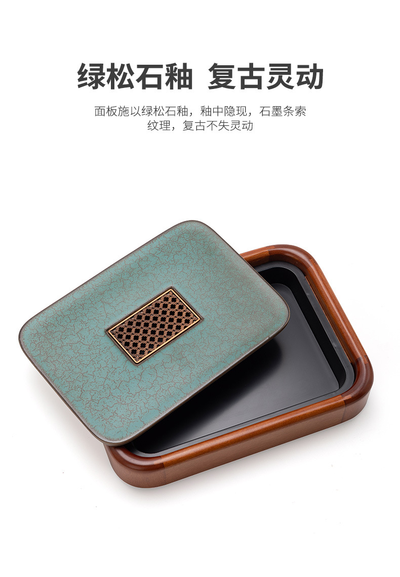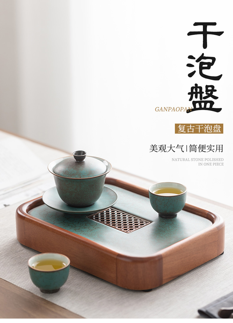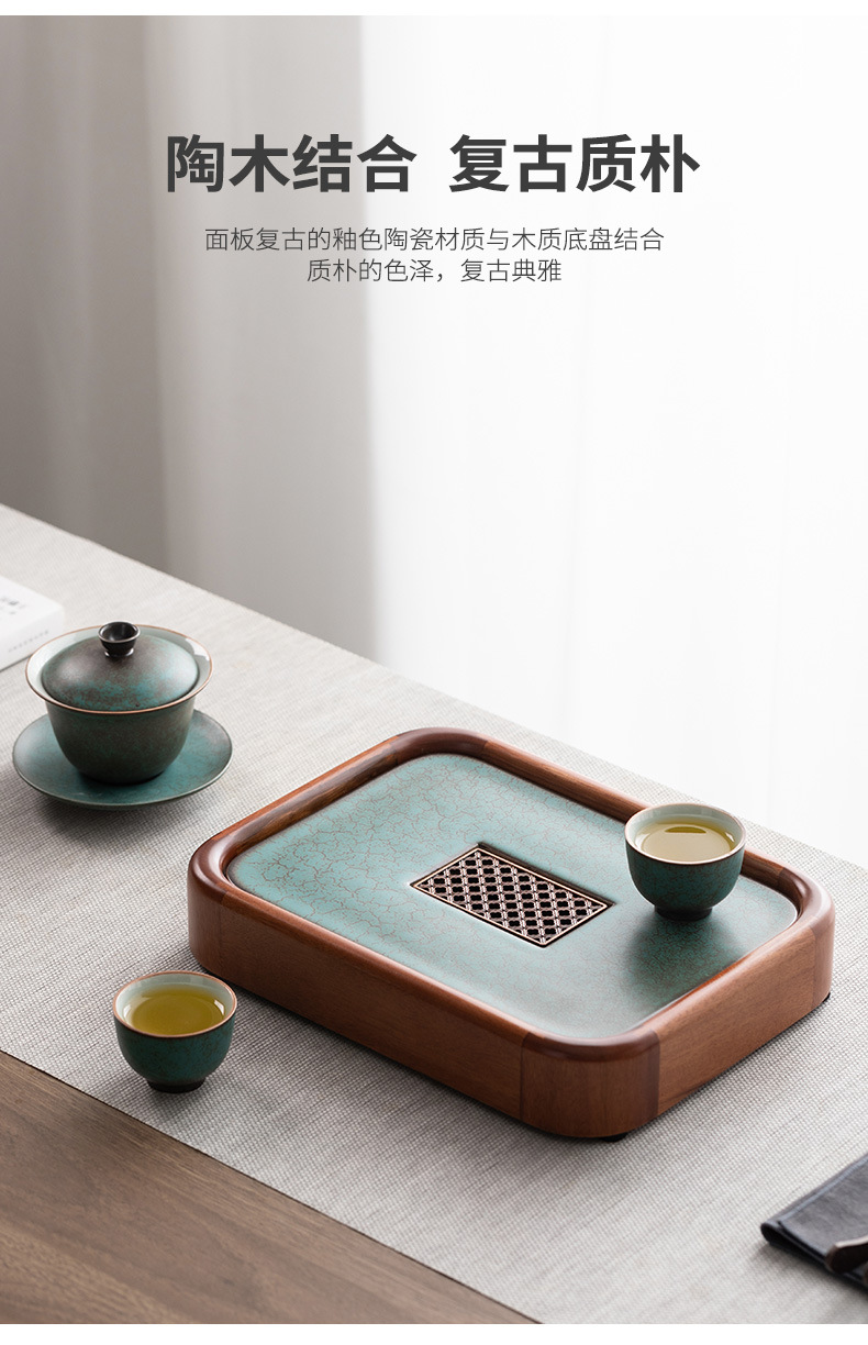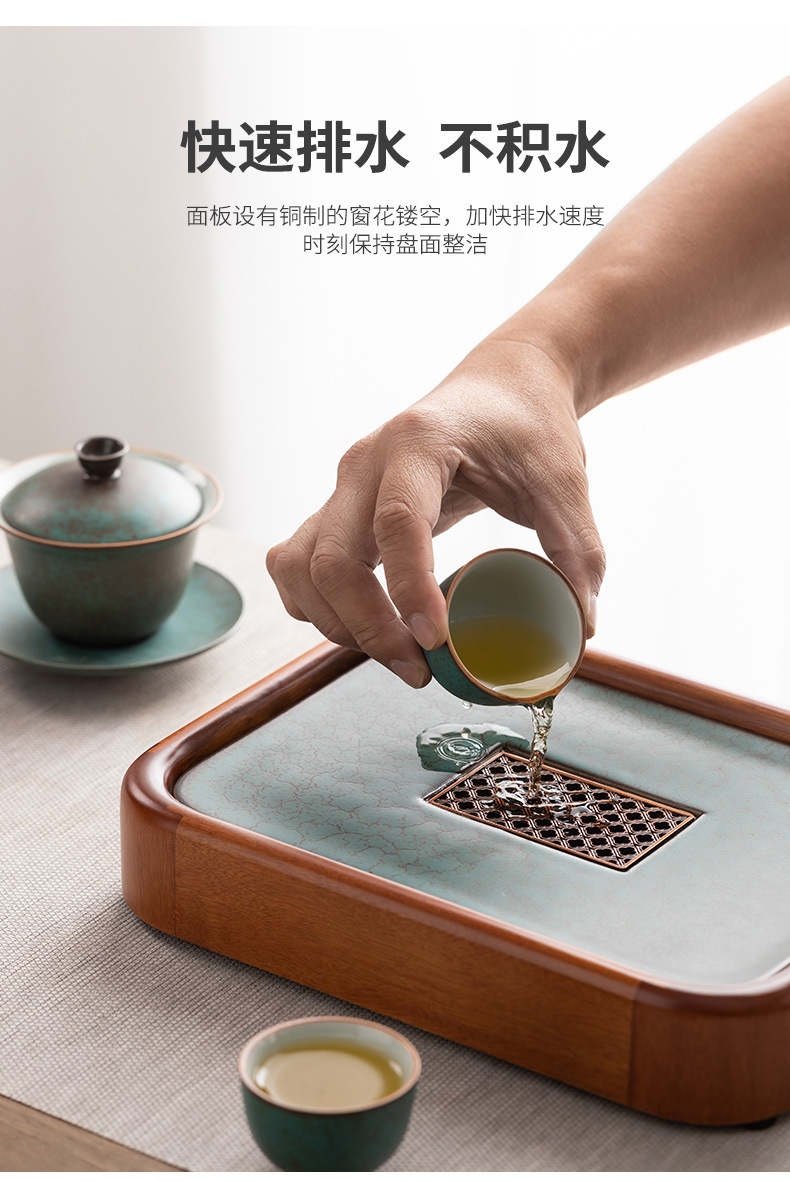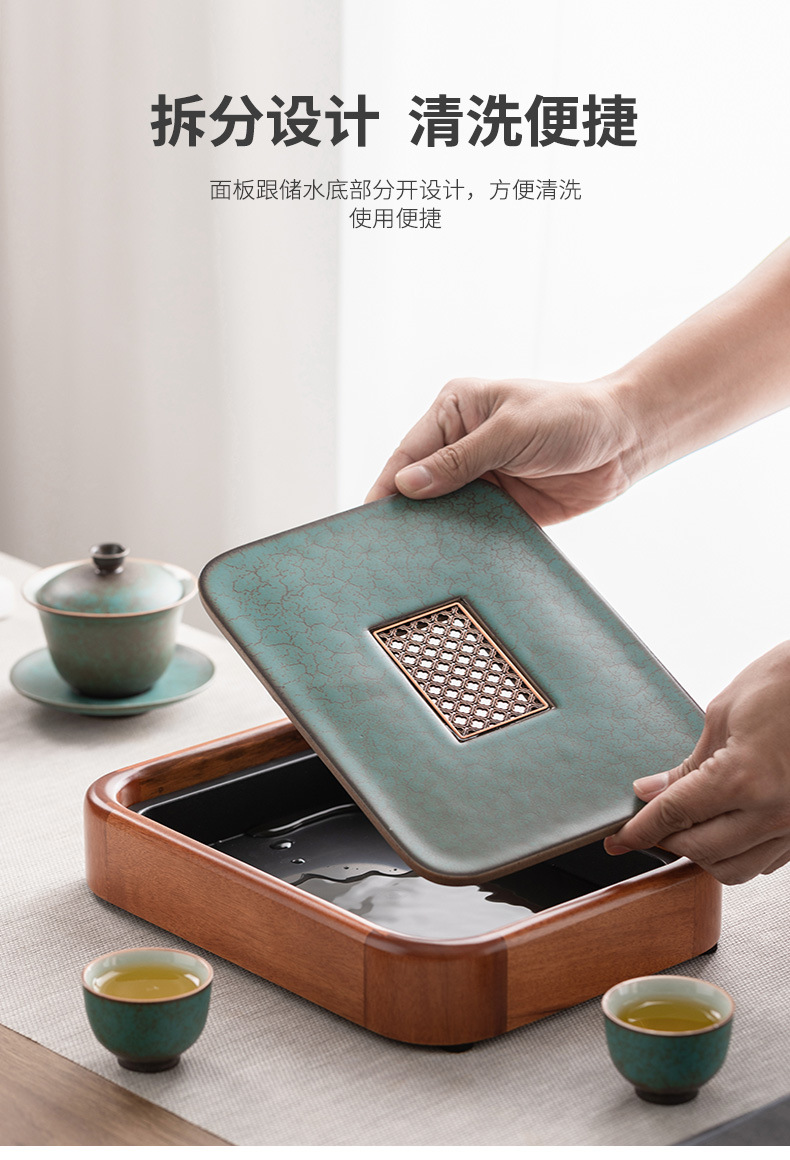 Yipin Qiantang 가정용 차 트레이 솔리드 우드 물 저장 일본식 차 트레이 건조 적신 테이블 가벼운 고급 차 테이블 작은 차 세트