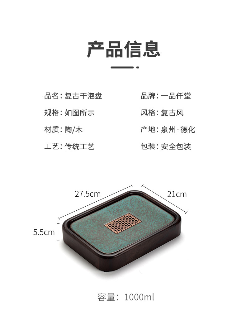 Yipin Qiantang 가정용 차 트레이 솔리드 우드 물 저장 일본식 차 트레이 건조 적신 테이블 가벼운 고급 차 테이블 작은 차 세트스토어 가기