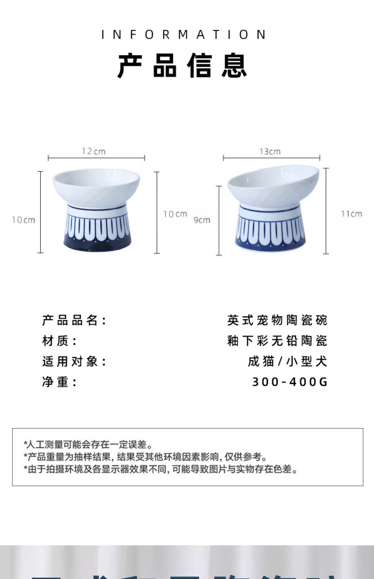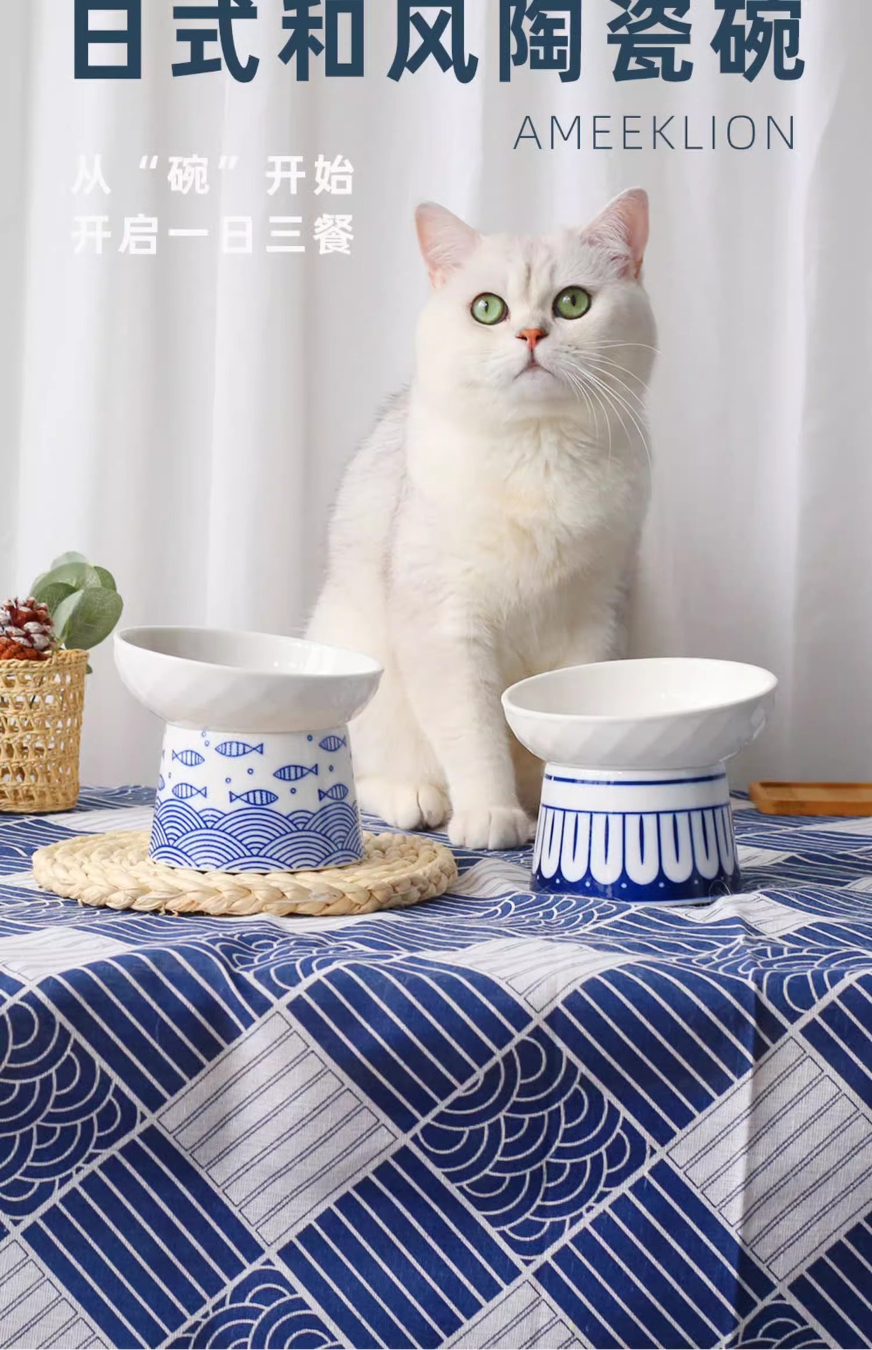 고양이 그릇 애완 동물 세라믹 그릇 높은 발 보호 자궁 경부 척추 고양이 음식 그릇 밥 그릇 반대로 뒤집는 개 밥 그릇 마시는 그릇