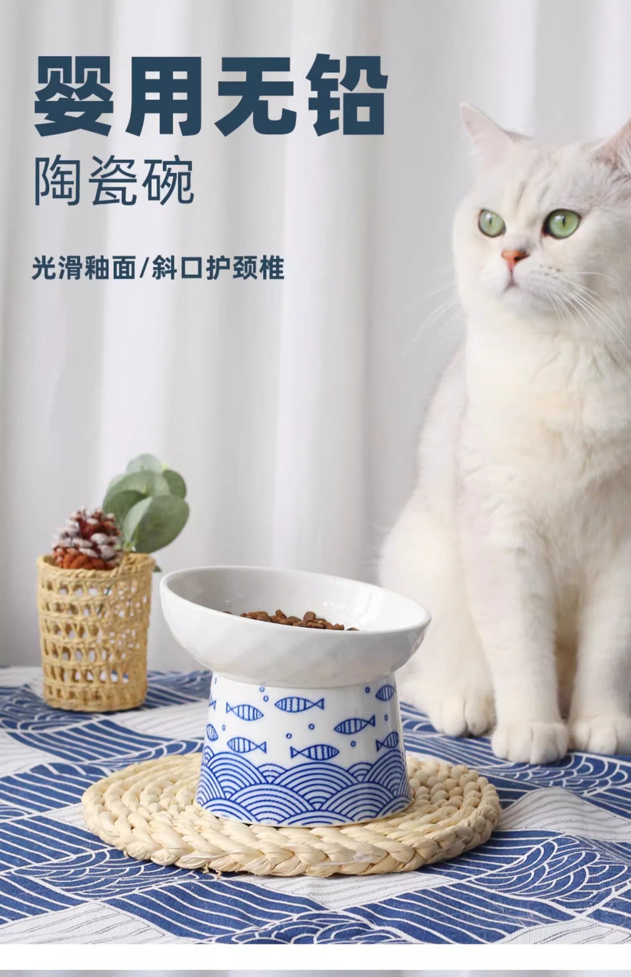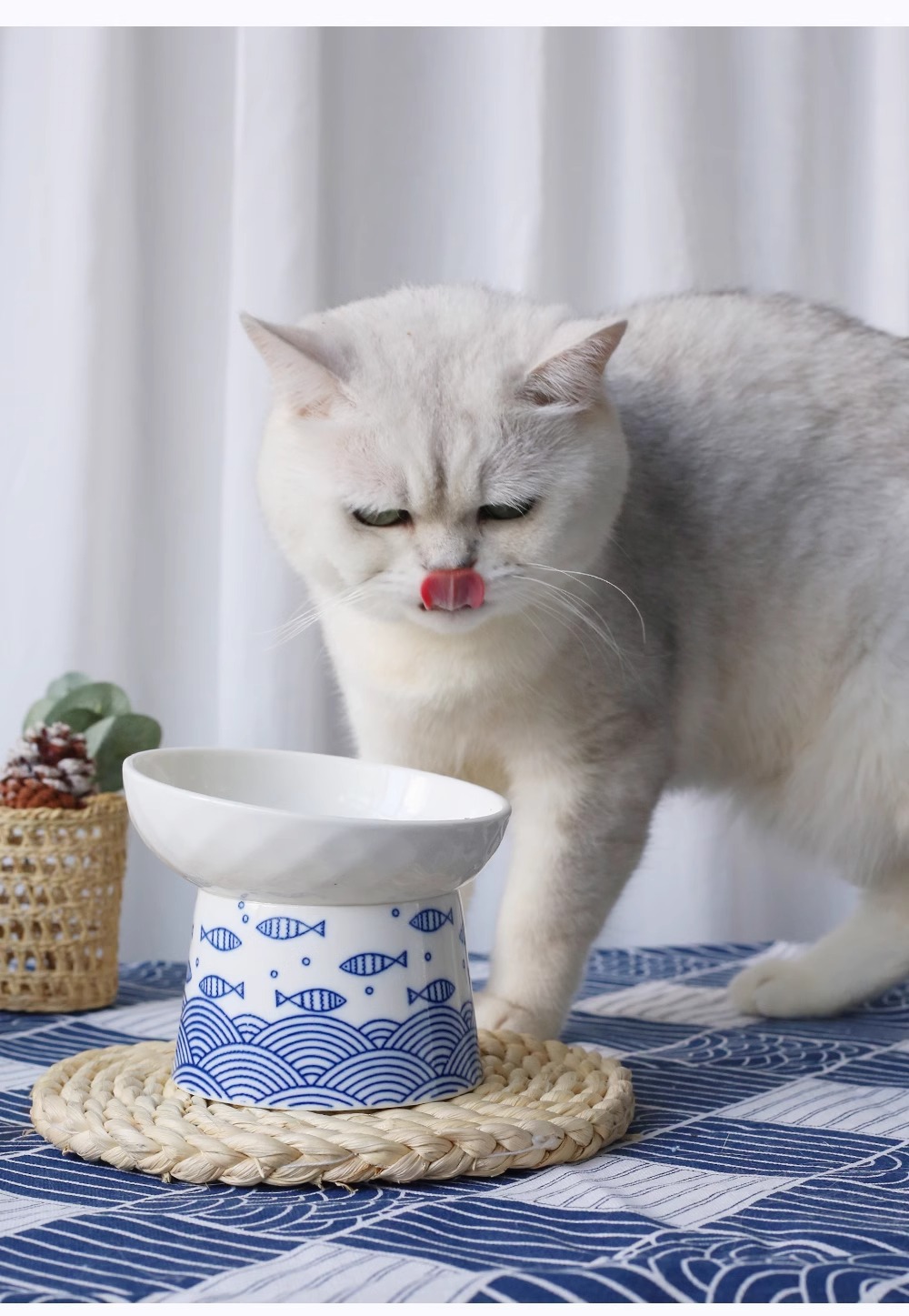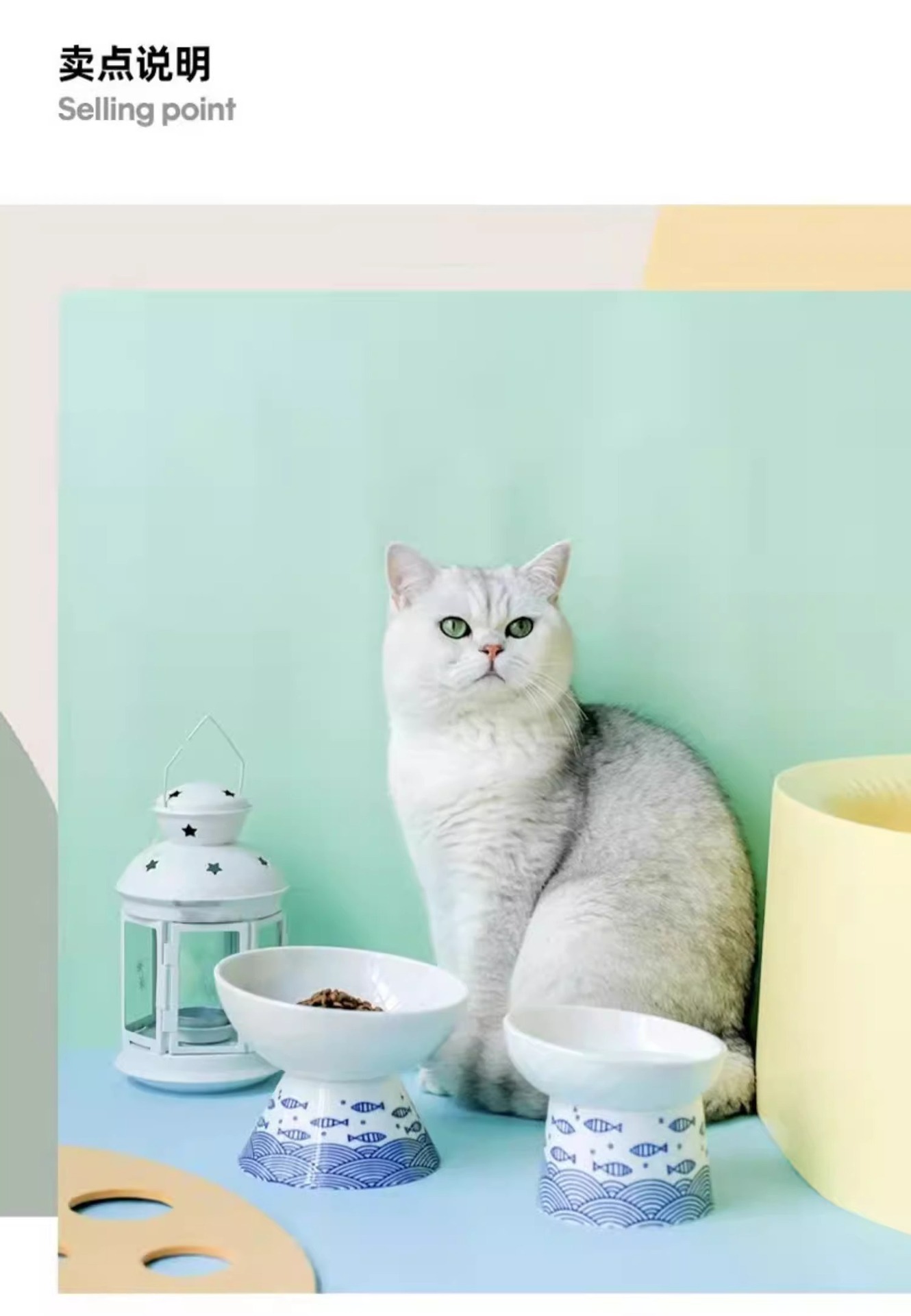고양이 그릇 애완 동물 세라믹 그릇 높은 발 보호 자궁 경부 척추 고양이 음식 그릇 밥 그릇 반대로 뒤집는 개 밥 그릇 마시는 그릇스토어 가기