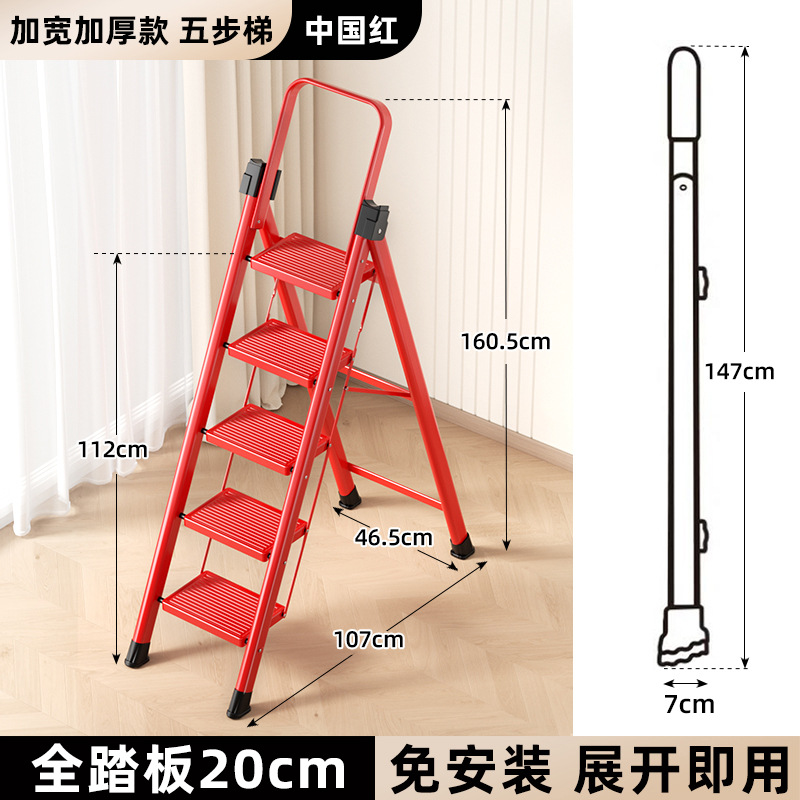 • [스마트 접이식 팔걸이] [차이나 레드] 업그레이드된 페달 [4단 사다리]✓