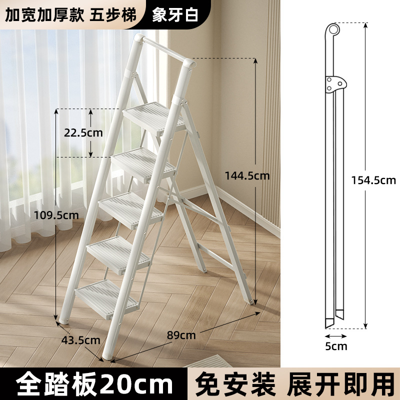 • [보이지 않는 난간] [아이보리 화이트] [5단 사다리] ✓