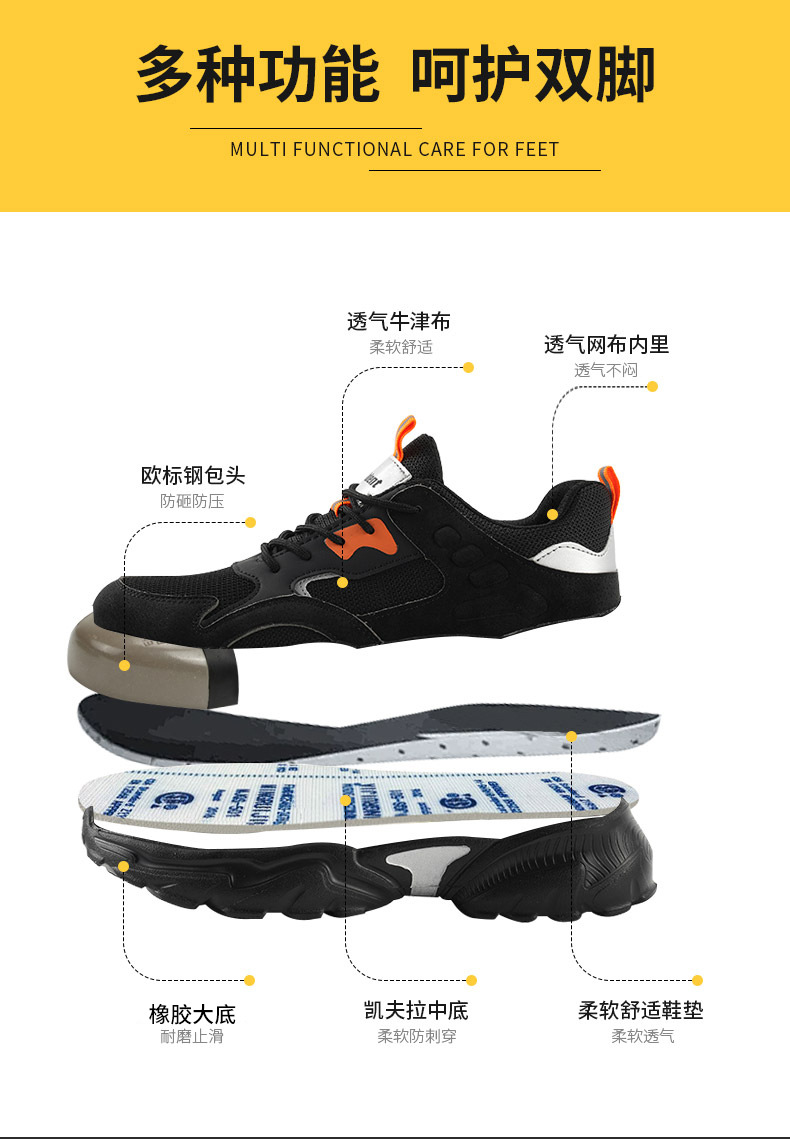 통기성 경량 발 자유로운 노동 보호 신발 안티 스매싱 안티 압력 작업 신발 패션 틈새 캐주얼 신발 안티 펑크 남성 신발